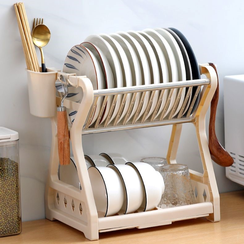 Xếp chồng bát đĩa ướt sau khi rửa