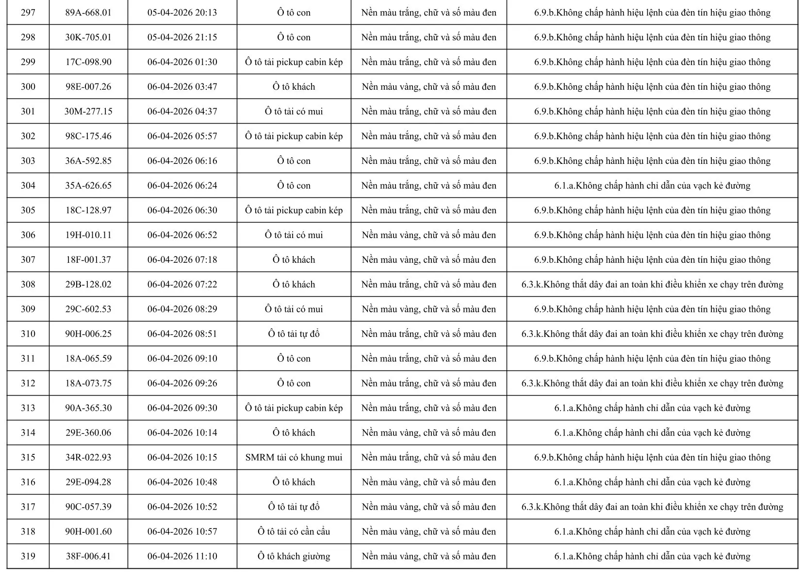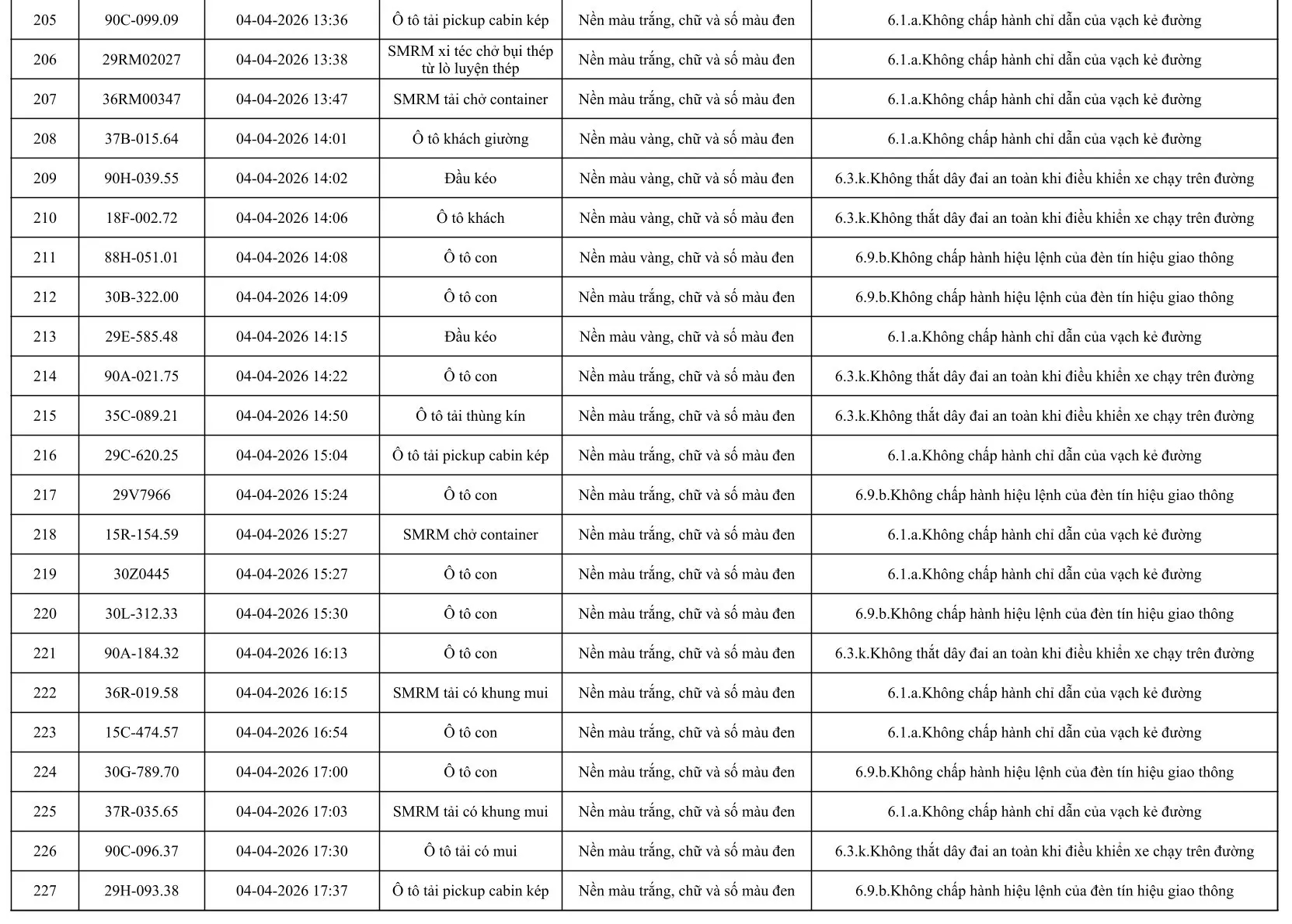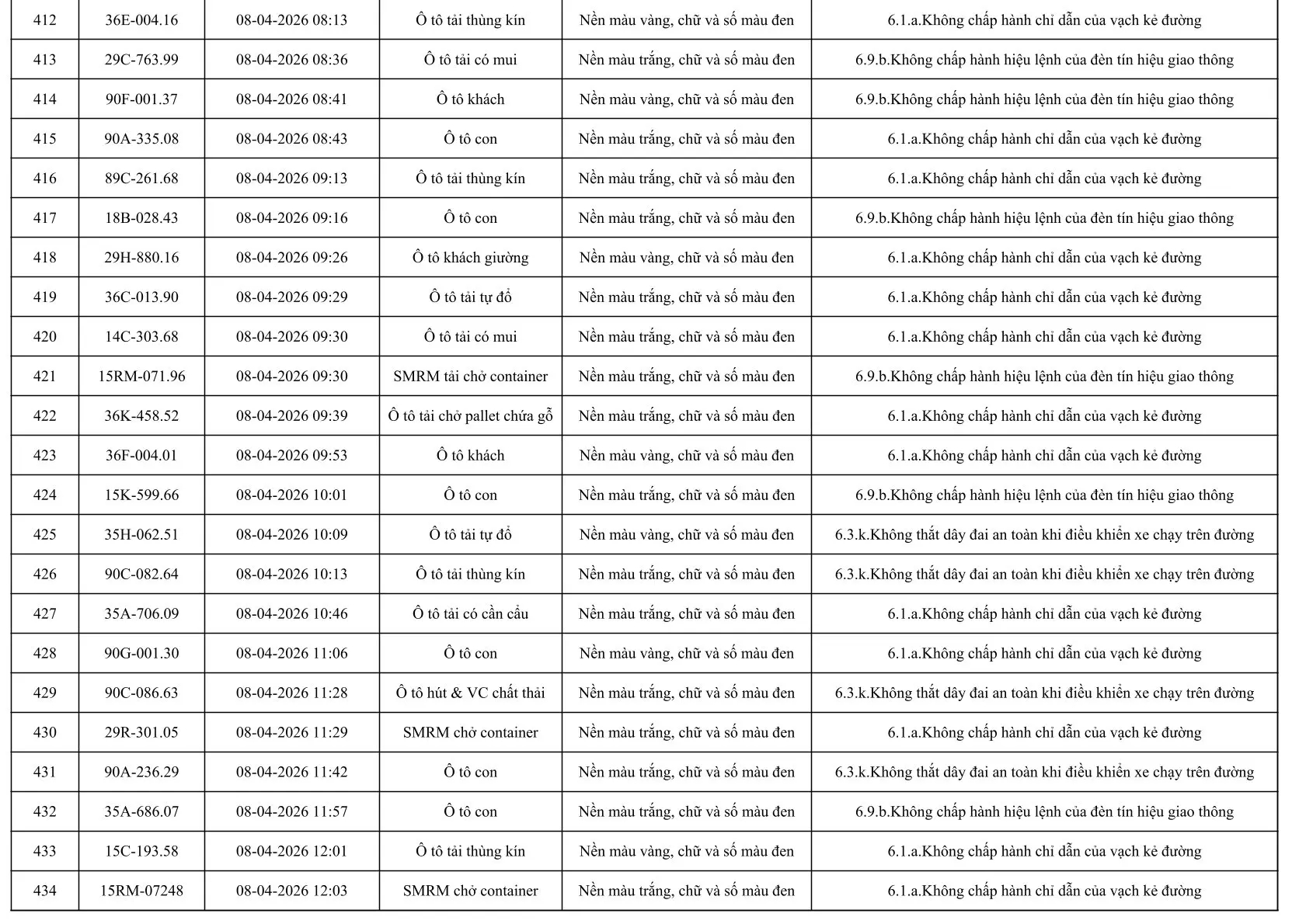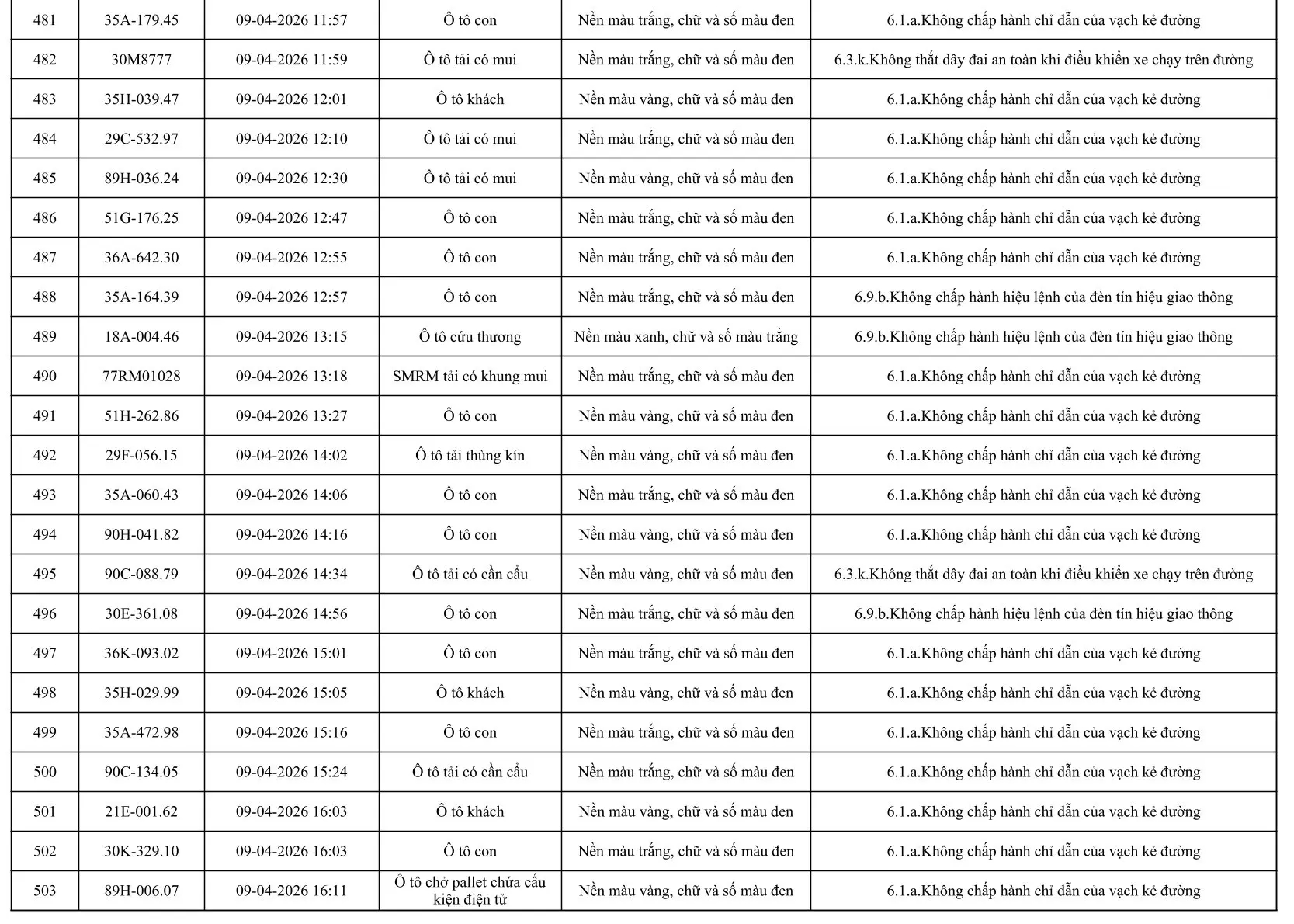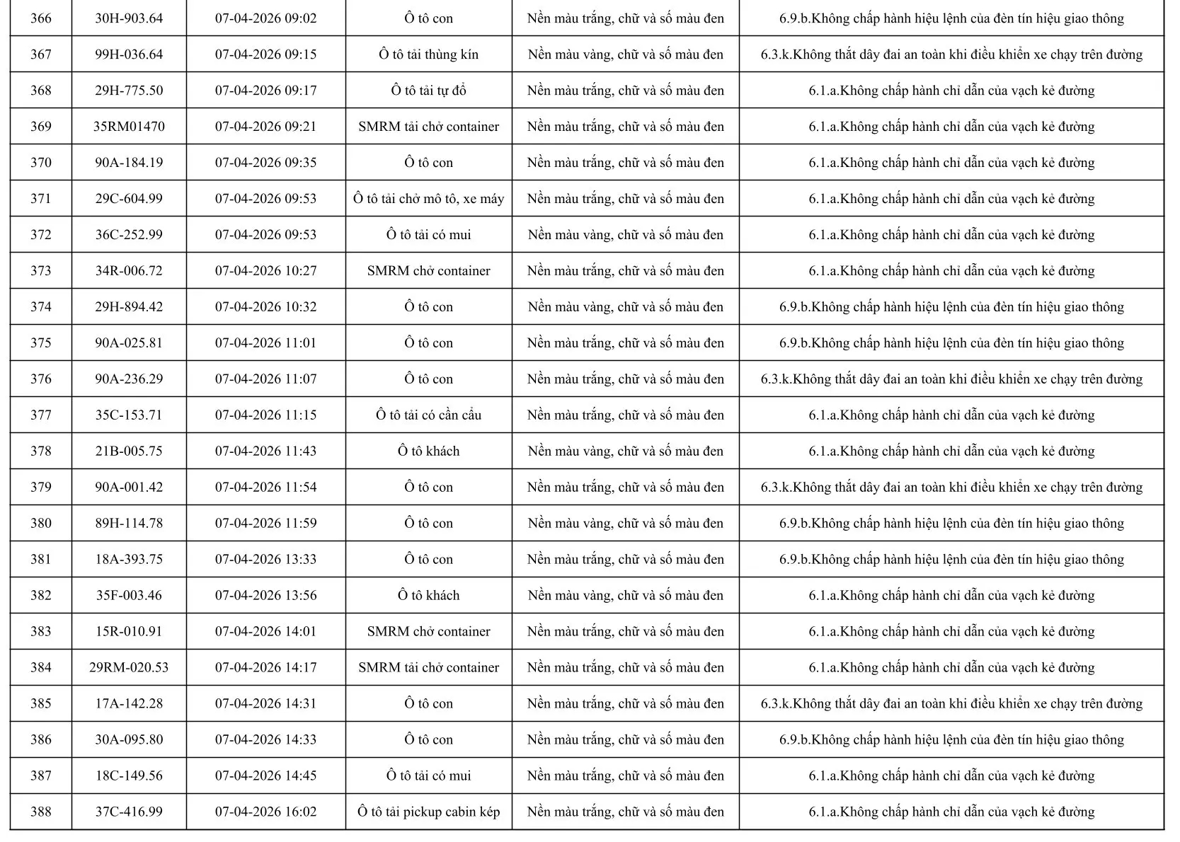 Sau đây là danh sách các phương tiện giao thông vi phạm: Xem tại đây!