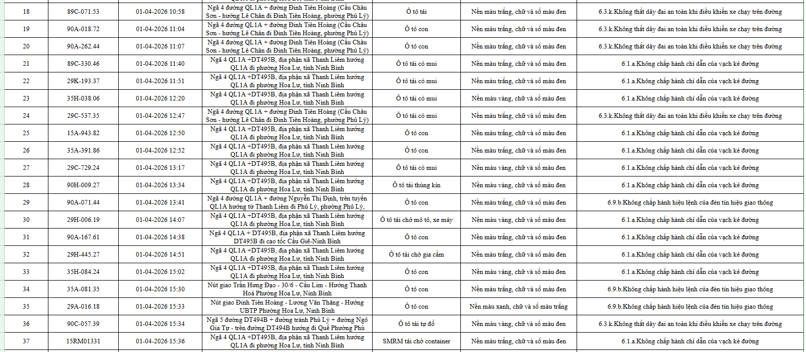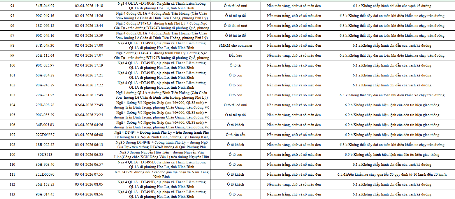 Mới đây, Phòng CSGT Công an tỉnh Ninh Bình công bố danh sách 553 ô tô vi phạm luật giao thông đường bộ từ ngày 1-10/4/2026, được phát hiện qua hệ thống giám sát và thiết bị nghiệp vụ.