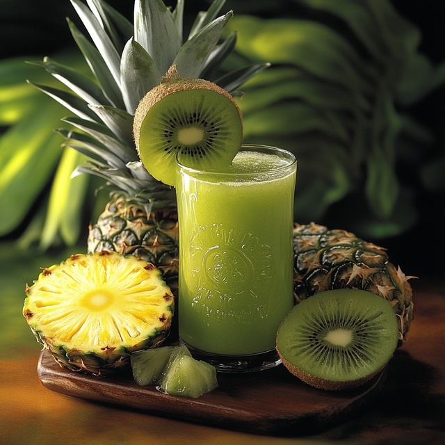 Kiwi và dứa đều là những “siêu thực phẩm” chứa vitamin C dồi dào, giúp tổng hợp collagen và tăng cường khả năng phục hồi da. Dứa còn có bromelain – một enzyme giúp tiêu hóa tốt và chống viêm da. Khi kết hợp thêm collagen thực vật (plant-based collagen booster), hiệu quả tăng sinh collagen sẽ rõ rệt hơn.