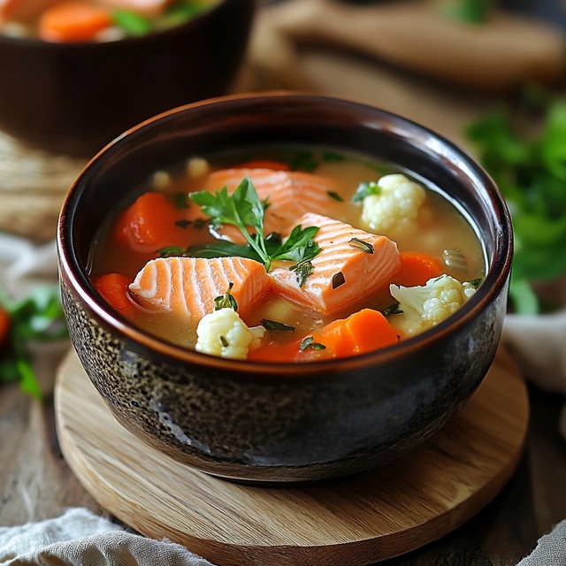 2. Súp cá hồi rau củ: tăng collagen, dưỡng da từ bên trong