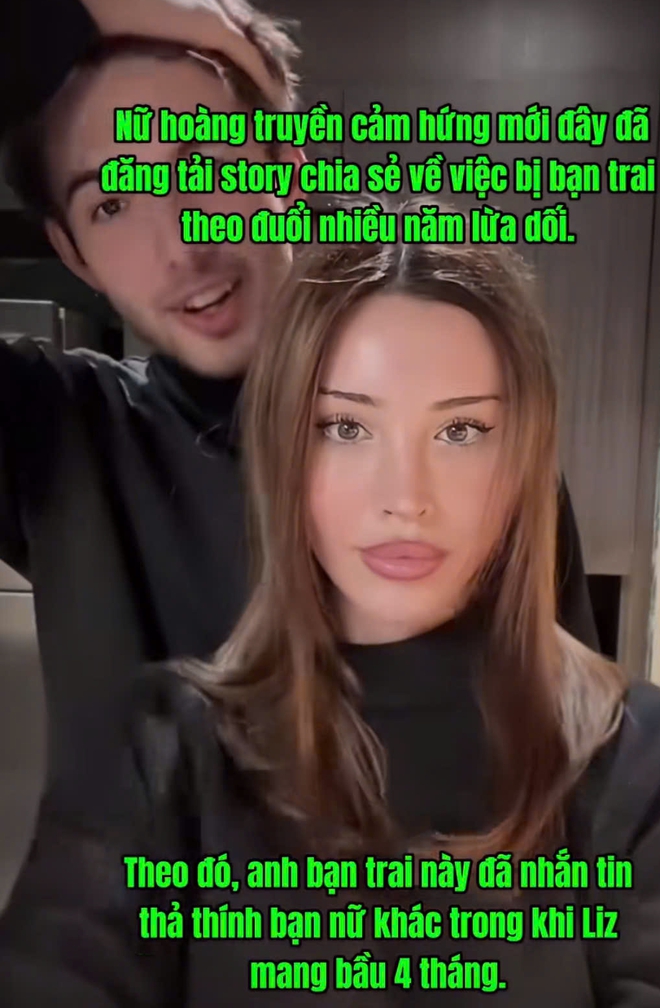 Mới đây trên story Instagram cá nhân hơn hơn 4,2 triệu người theo dõi, TikToker The Wizard Liz (Lize Dzjabrailova, SN 1999, ở Dubai) – người nổi tiếng với biệt danh “Bà tổ tính nữ” (người có tính nữ cao – PV) bất ngờ chia sẻ bị vị hôn phu – YouTuber Landon Nickerson “cắm sừng” khi cô đang mang bầu ở tháng thứ 4.