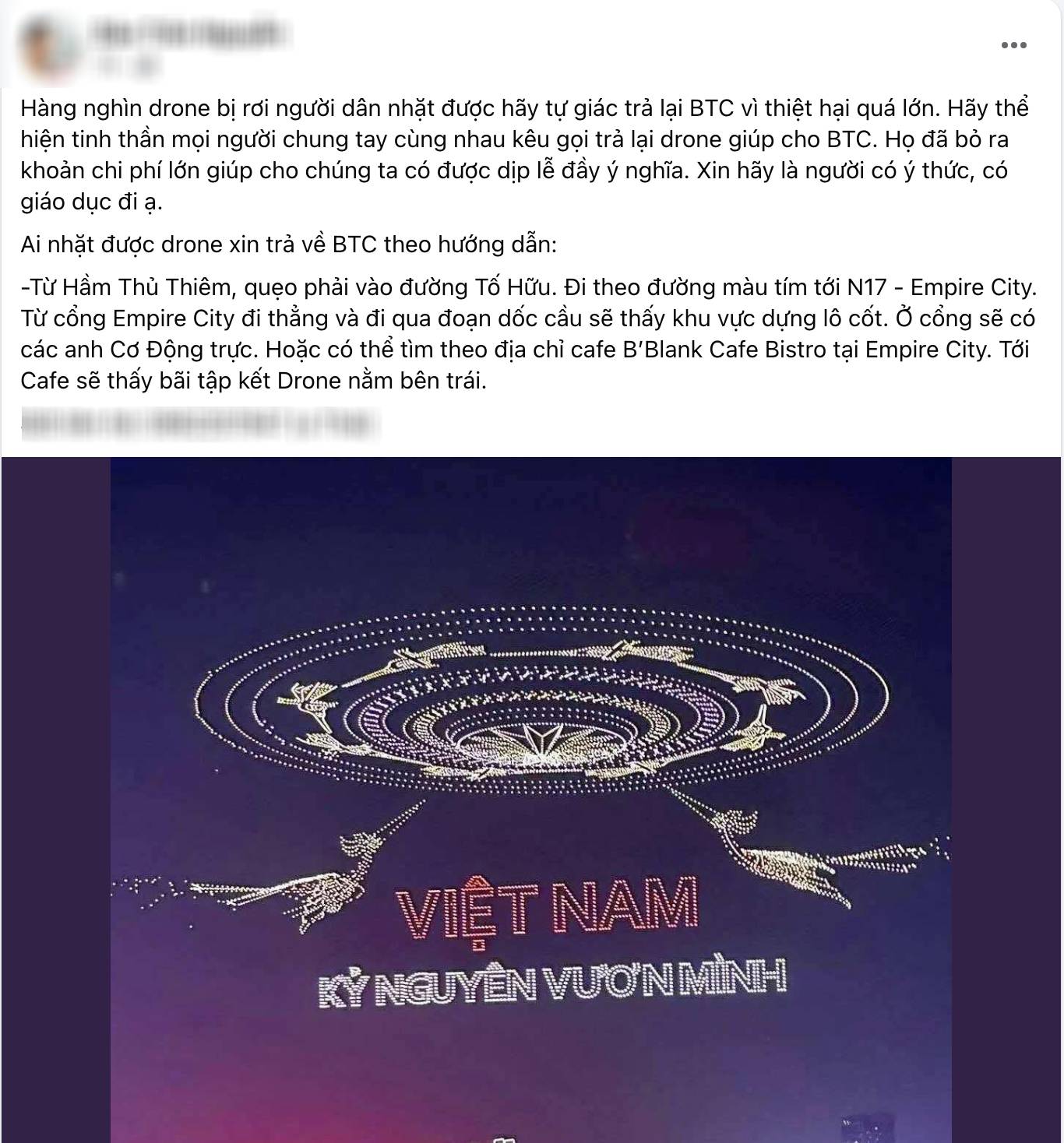 Không chỉ Ban tổ chức, rất nhiều người đã đăng bài viết hỗ trợ nhờ tìm lại drone. Việc này đã giúp quá trình tìm kiếm drone thất lạc sau sự cố thuận lợi hơn đáng kể.