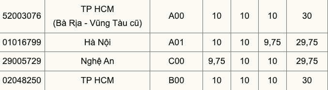 Thủ khoa C00 và A01 là 29,75. Trong đó, thí sinh đứng đầu tổ hợp D01 cũng chính là thủ khoa A01.