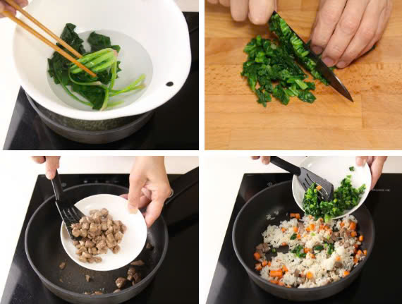 Cách chế biến món cơm chiên gan heo cải bó xôi