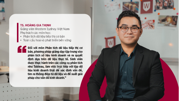 Tại Western Sydney Việt Nam, phương pháp giảng dạy tập trung vào việc giải thích các khái niệm thông qua những ví dụ gần gũi, sau đó từng bước đi vào phạm vi chuyên sâu. Sinh viên được làm quen với các công cụ quen thuộc như Excel và R Studio, giúp trang bị bộ kỹ năng sáng giá đáp ứng yêu cầu nhà tuyển dụng.
