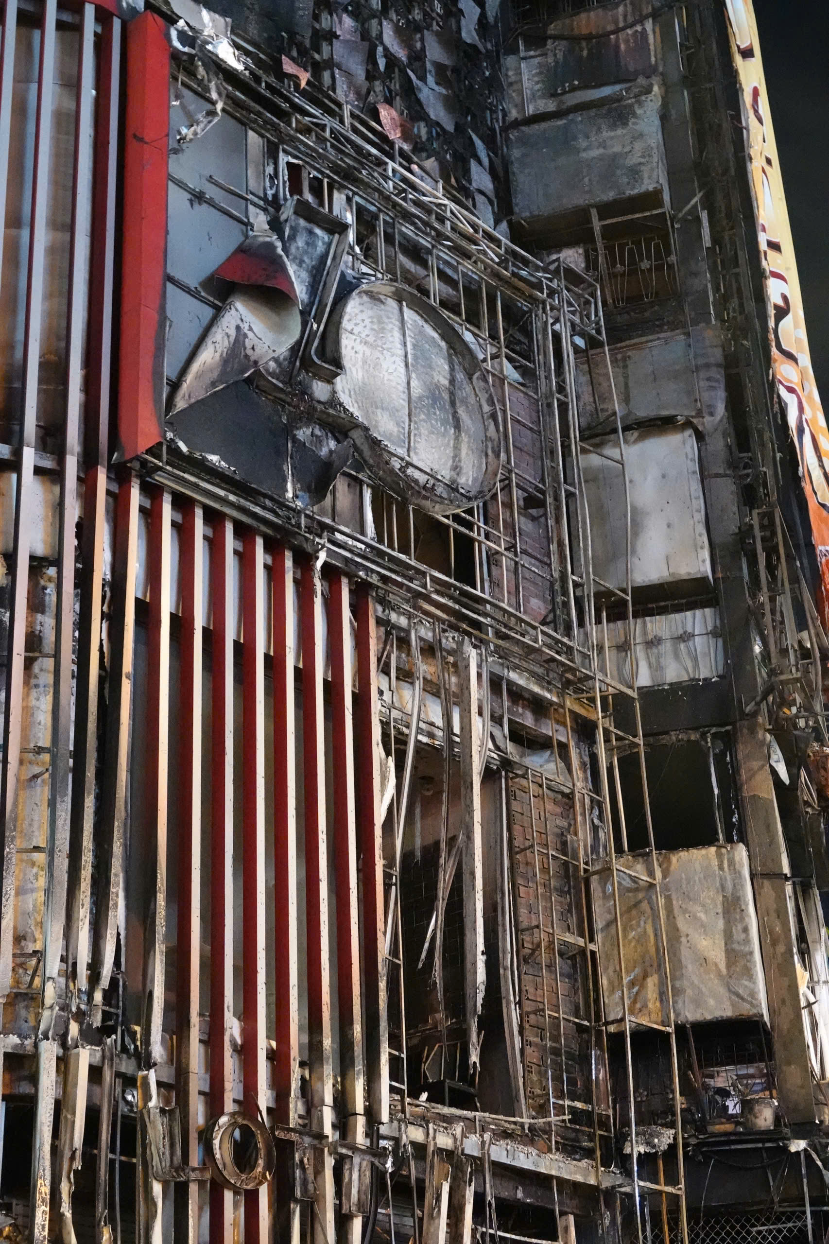 Biển quảng cáo bị ngọn lửa thiêu rụi trơ khung sắt