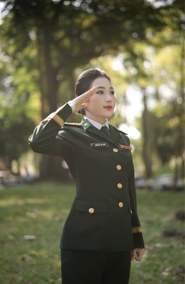 Những ngày gần đây, bức ảnh một nữ chiến sĩ xinh đẹp tại Dinh Độc Lập gây sốt mạng xã hội. Được biết, chiến sĩ này chính là Trung úy Nguyễn Thị Thủy (SN 1993, quê ở Bình Thuận), hiện công tác tại Đoàn nghệ thuật Bộ Tư lệnh Bộ đội Biên phòng (Hà Nội).
