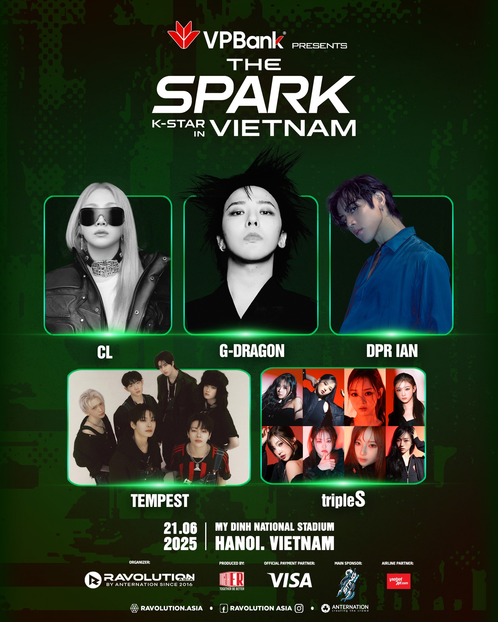 Nóng nhất lúc này là sự kiện K-Star Spark in Vietnam Mega Concert 2025. Ngày 13/5, siêu concert xác nhận G-Dragon sẽ đến biểu diễn tại SVĐ Mỹ Đình, Hà Nội. Thông tin chưa kịp nguội, K-Star Spark in Vietnam Mega Concert 2025 tiếp tục “thả xích” dàn line-up toàn sao Hàn đình đám vào sáng 14/5. Ngoài ông hoàng Kpop G-Dragon, còn có CL, DPR IAN, TEMPEST và tripleS là những nghệ sĩ sẽ biểu diễn tại siêu concert sắp tới, dự kiến tổ chức ngày 21/6. MXH lập tức nổi bão.