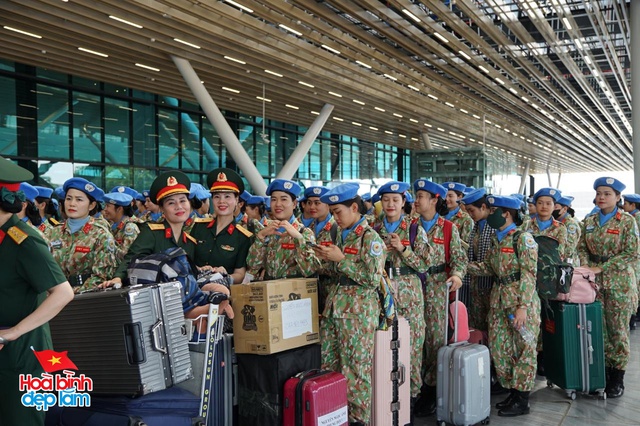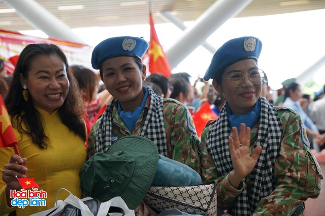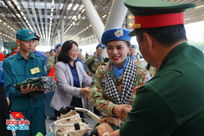 Hình ảnh chia tay các nữ chiến sĩ lực lượng Gìn giữ hòa bình (Ảnh: Quân)