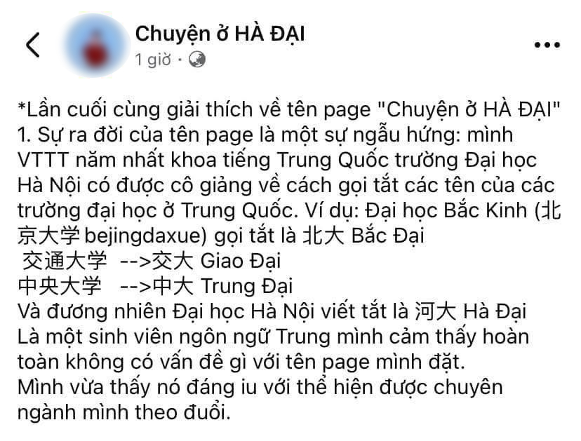 “Là một sinh viên ngôn ngữ Trung, mình cảm thấy hoàn toàn không có vấn đề gì với tên page mình đặt. Mình vừa thấy nó đáng yêu, vừa thể hiện được chuyên ngành mình theo đuổi”, bạn sinh viên chia sẻ.