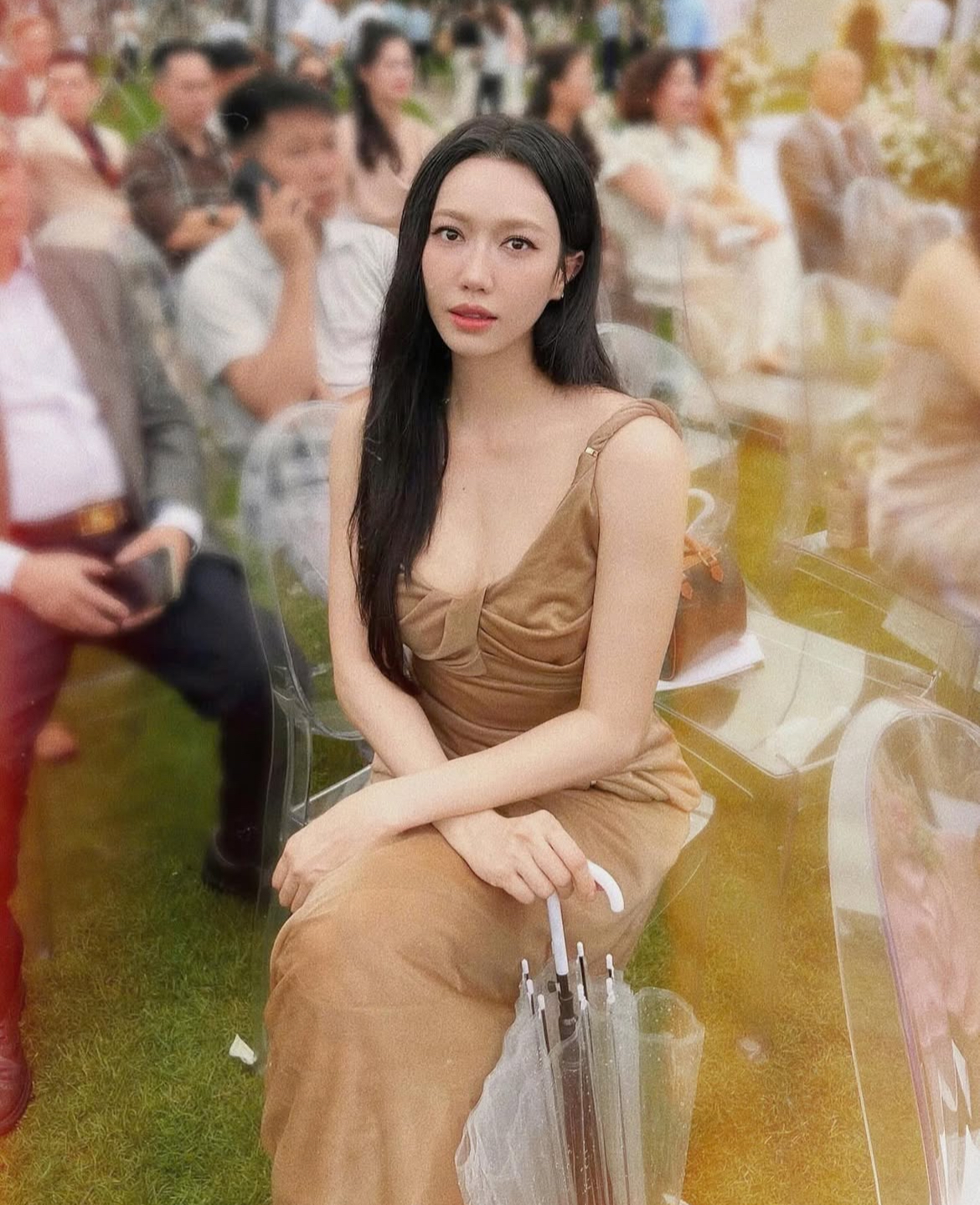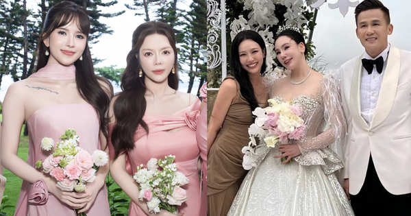 Thiều Bảo Trâm – Lý Nhã Kỳ – Myra Trần được Hồ Quỳnh Hương lựa chọn góp mặt trong danh sách dàn phù dâu. Các mỹ nhân diện váy lụa màu hồng, mỗi người đều được chuẩn bị bó hoa riêng. Khoảnh khắc dàn phù dâu đồng loạt xuất hiện, tạo nên khung hình bùng nổ visual gây chú ấn tượng. Nếu như Thiều Bảo Trâm gây ấn tượng bởi vóc dáng mảnh mai, visual thăng hạng sau khi sửa mũi thì Lý Nhã Kỳ được khen ngợi trẻ trung hậu giảm cân. Thiều Bảo Trâm cho biết rất hạnh phúc khi lần đầu được làm phù dâu. Myra Trần hào hứng: “Người thầy mà con yêu thương gần 10 năm nay. Con mong cô chú trăm năm hạnh phúc”.