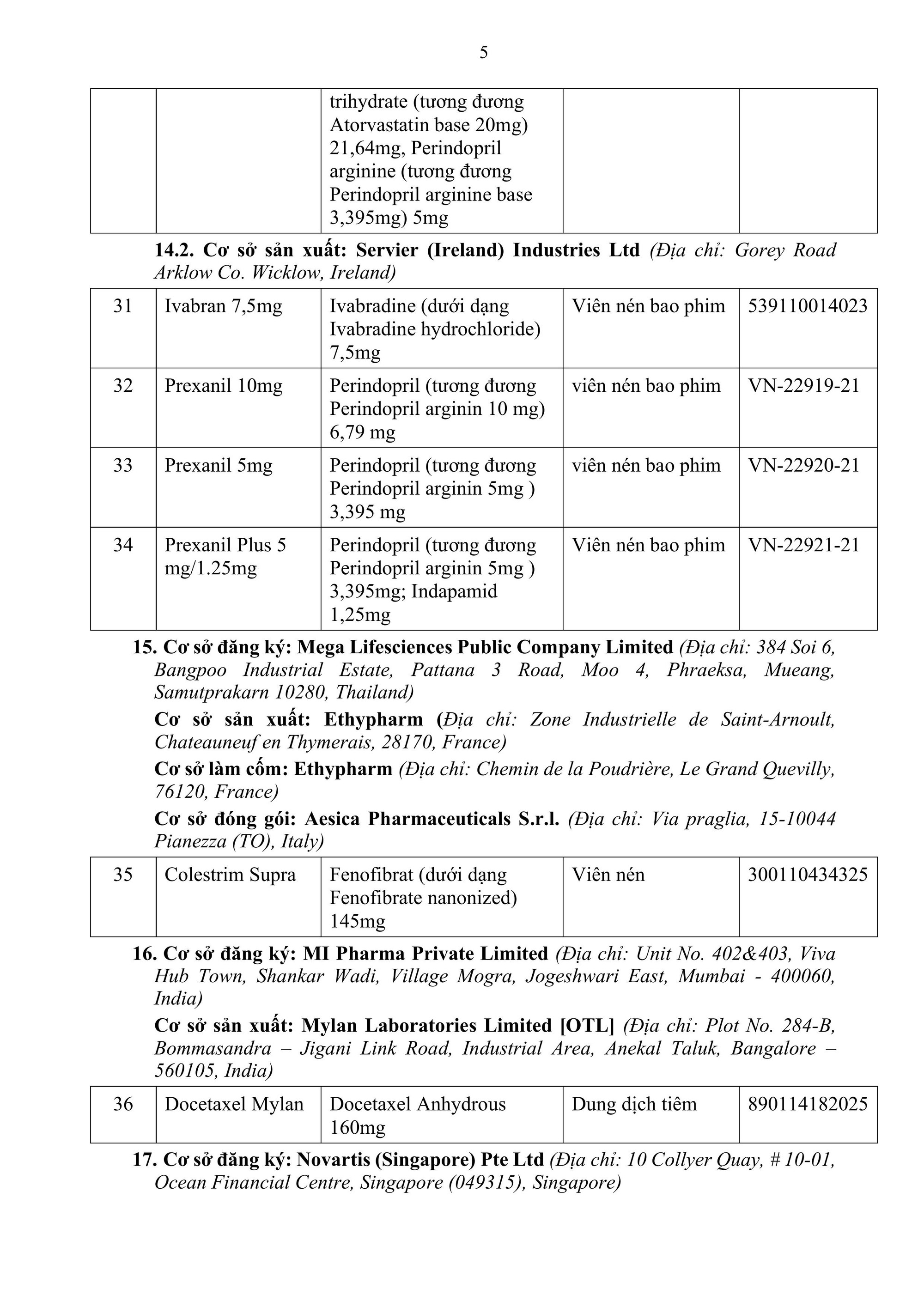 Danh mục 54 thuốc thu hồi Giấy đăng ký lưu hành tại Việt Nam gồm: