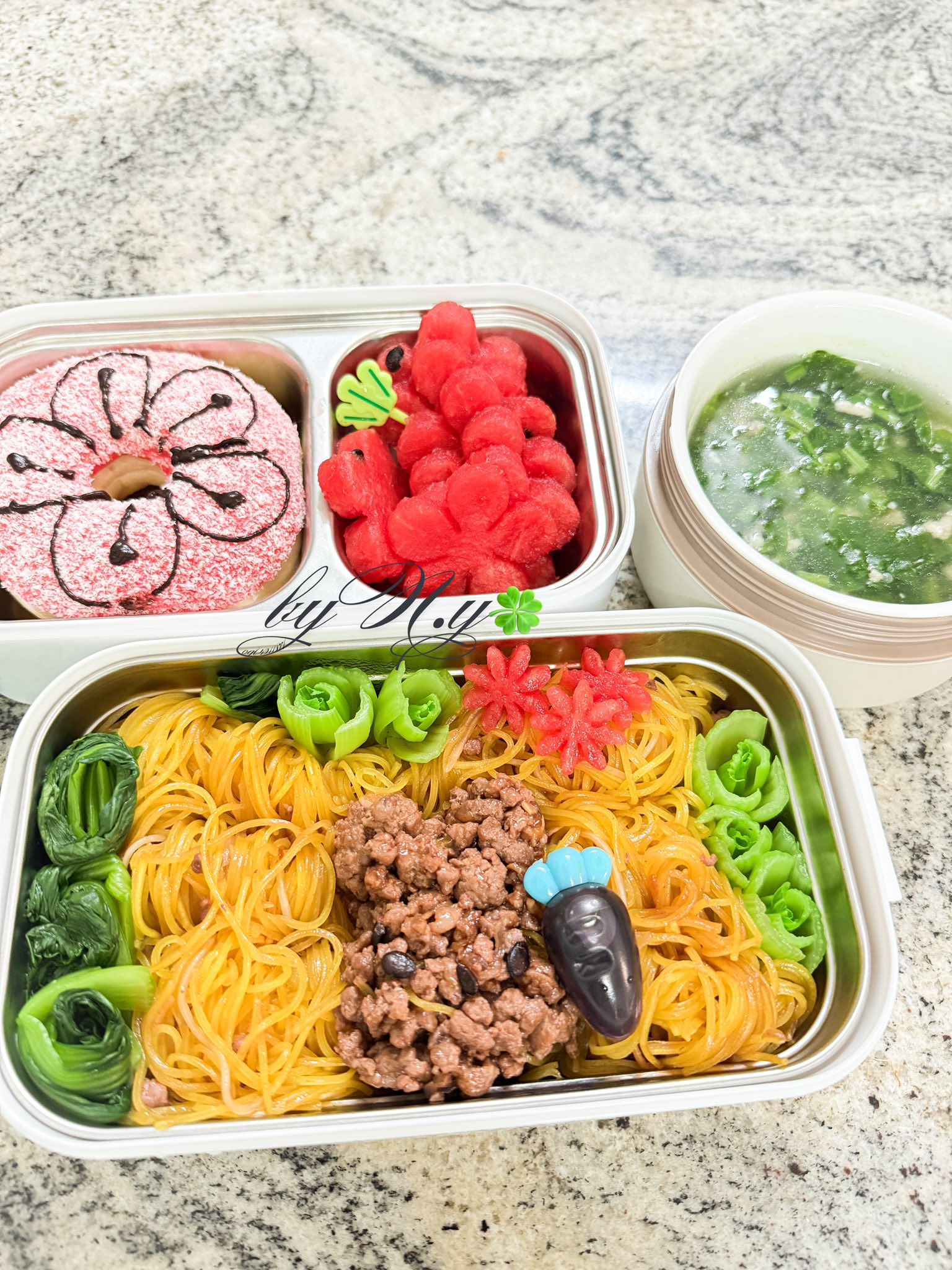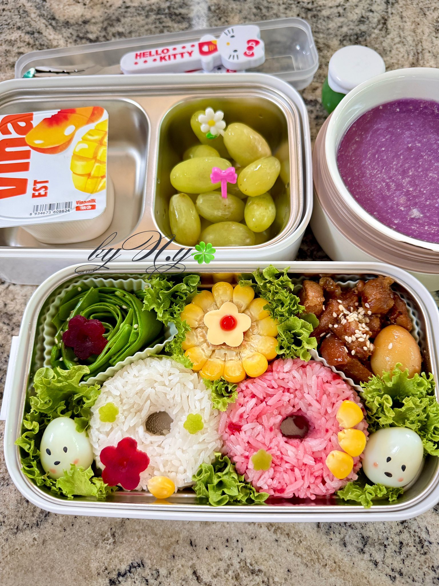 Dù mưa hay nắng, mỗi ngày em đều có 8 chuyến xe đưa đón con đến trường, một tay lo liệu cơm nước, nhà cửa, công việc, học hành… Nhưng chưa bao giờ mình cho phép bản thân lơ là những bữa cơm của con. Dù vội đến mấy, bento mỗi sáng đến trường vẫn đầy đủ dinh dưỡng, màu sắc, và cả tình yêu của mẹ.