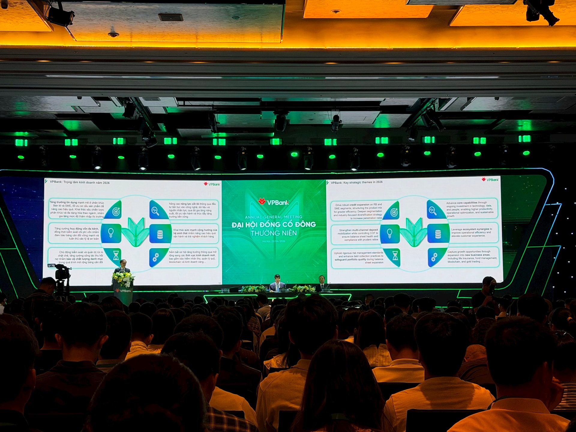 Kết thúc phần báo cáo của Ban điều hành, ông Nguyễn Đức Vinh chia sẻ: Kế hoạch 2026 là điểm khởi đầu cho một chu kỳ mới – giai đoạn 5 năm hết sức quan trọng với VPBank. Trên cơ sở chiến lược đã đề ra, VPBank hoạch định mình là ngân hàng hàng đầu tại Việt Nam, trở thành định chế tài chính hùng hậu, vững mạnh, góp phần thúc đẩy sự phát triển bền vững và thịnh vượng của quốc gia, cộng đồng.