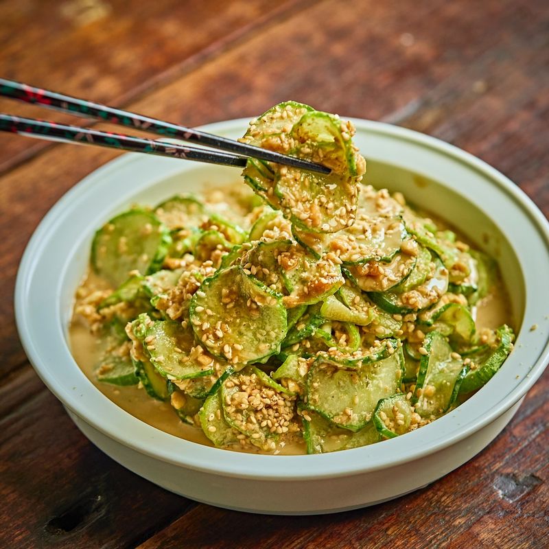 Như vậy là một món ăn độc đáo sử dụng dưa chuột – loại nguyên liệu tươi mát đang vào chính vụ, rất hợp với bữa cơm trong tiết trời mùa hè nóng bức. Giờ thì bạn hãy thử gắp một miếng ăn thử xem. Kết cấu giòn tan của dưa chuột xen chút vị mặn từ muối và sốt bơ đậu phộng đậm đà thật tuyệt vời! Đây là món ăn độc đáo, cũng rất hợp để ăn cùng mì trộn.