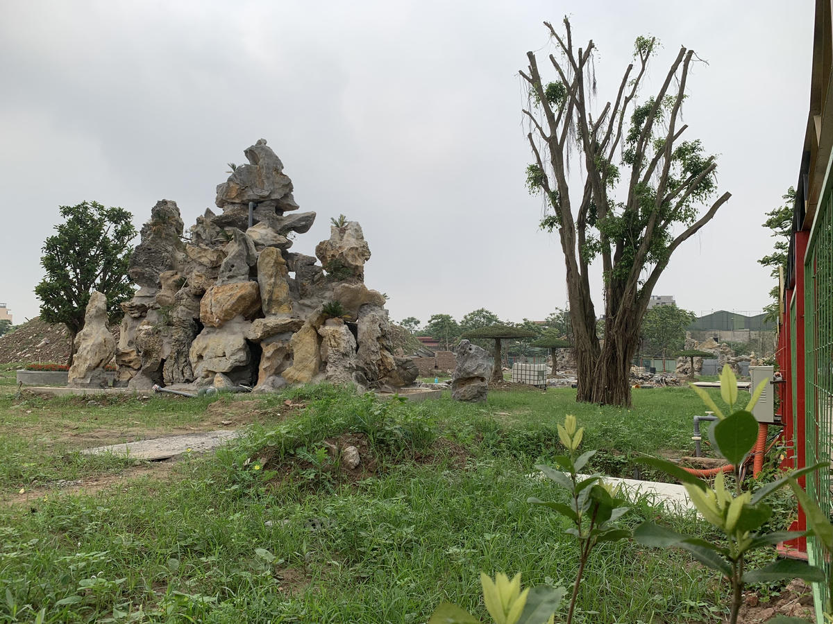 Đi sâu vào bên trong, phóng viên tiếp tục ghi nhận, tại đây chủ đầu tư đã cho lắp đặt một mô hình tàu hỏa với chiều dài lên đến cả trăm mét. Bên cạnh mô hình tàu hỏa là khu vui chơi dành cho trẻ em, tiểu cảnh sân vườn, hòn non bộ và nhiều chòi lưới sắt ngoài trời.