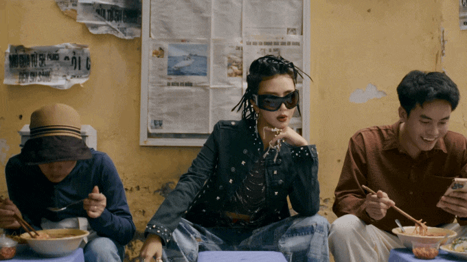 Phân cảnh này gắn với ngay đoạn đầu khi Quỳnh Anh Shyn đọc câu ca dao, trong khi phần lời vẫn nhắc đến “thanh lịch Tràng An”, thì phần hình lại kể một câu chuyện hoàn toàn khác – hỗn độn, nghịch ngợm, thậm chí hơi “lố”. Chính sự lệch pha này tạo nên hiệu ứng mỉa mai tinh tế, cho thấy cách Quỳnh Anh Shyn nhìn nhận văn hóa: không thần thánh hóa, cũng không phủ nhận, mà đặt nó trong trạng thái chuyển động của thời đại.