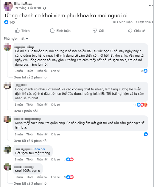 Đáng chú ý, thời gian gần đây nhiều người chia sẻ rằng họ đã sử dụng nước cốt chanh để vệ sinh vùng kín nhằm trị viêm phụ khoa. Đáng lo ngại hơn, có người trong nhóm này còn cho biết sau nhiều năm mãn kinh, họ “có kinh trở lại” nhờ uống nước chanh đều đặn mỗi ngày.