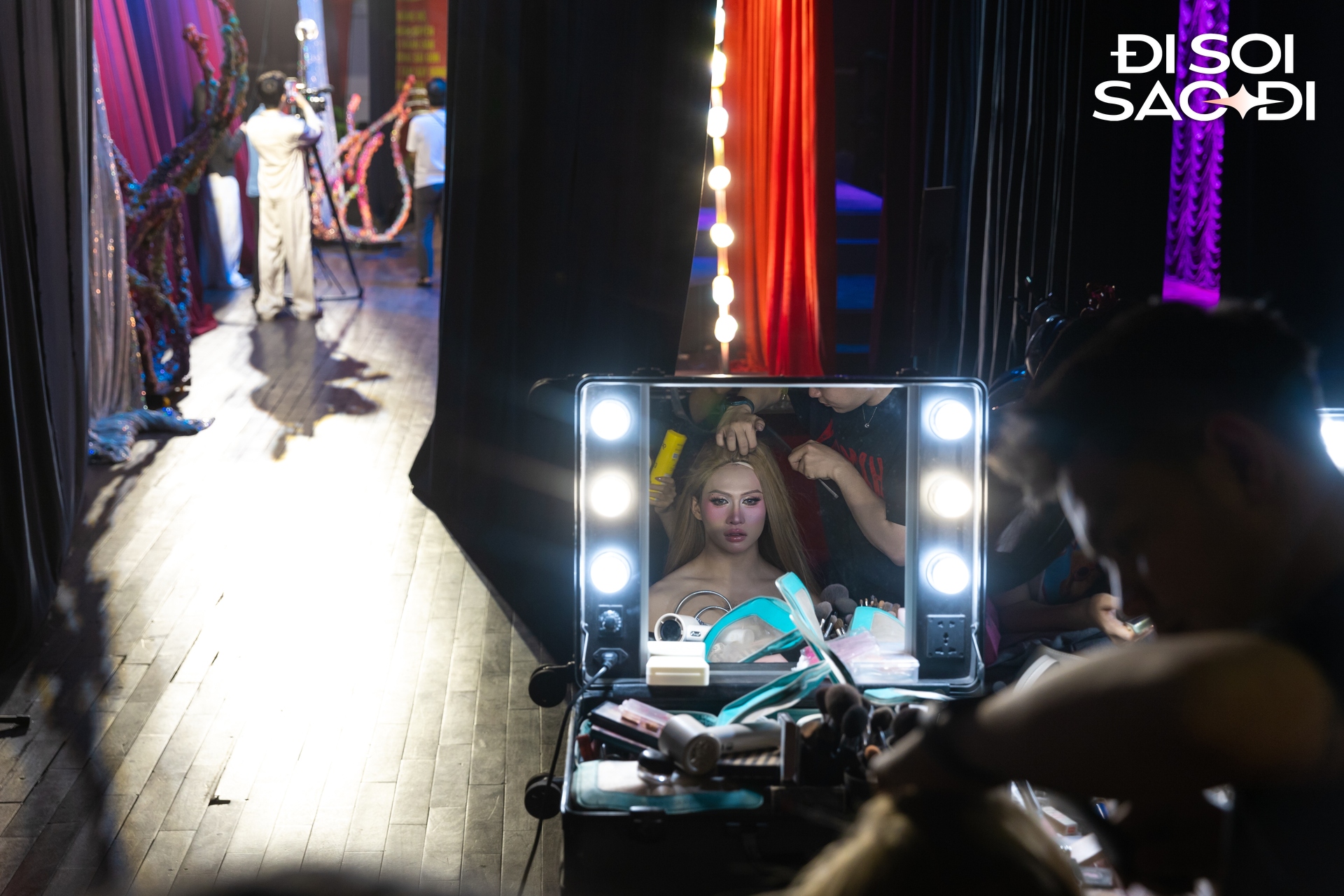 Không phải ánh đèn sân khấu rực rỡ hay những màn tung hứng duyên dáng khiến khán giả cười nghiêng ngả, phía sau vở kịch Đảo Hoa hậu lại là một thế giới hoàn toàn khác. Những hình ảnh hậu trường vừa được hé lộ cho thấy một lát cắt chân thực mà ít ai có cơ hội nhìn thấy. Trước giờ G, khu vực cánh gà gần như không có khái niệm nghỉ ngơi. Từ ekip make-up, làm tóc cho đến phục trang đều hoạt động liên tục để đảm bảo từng nhân vật xuất hiện trên sân khấu với diện mạo chỉn chu nhất.