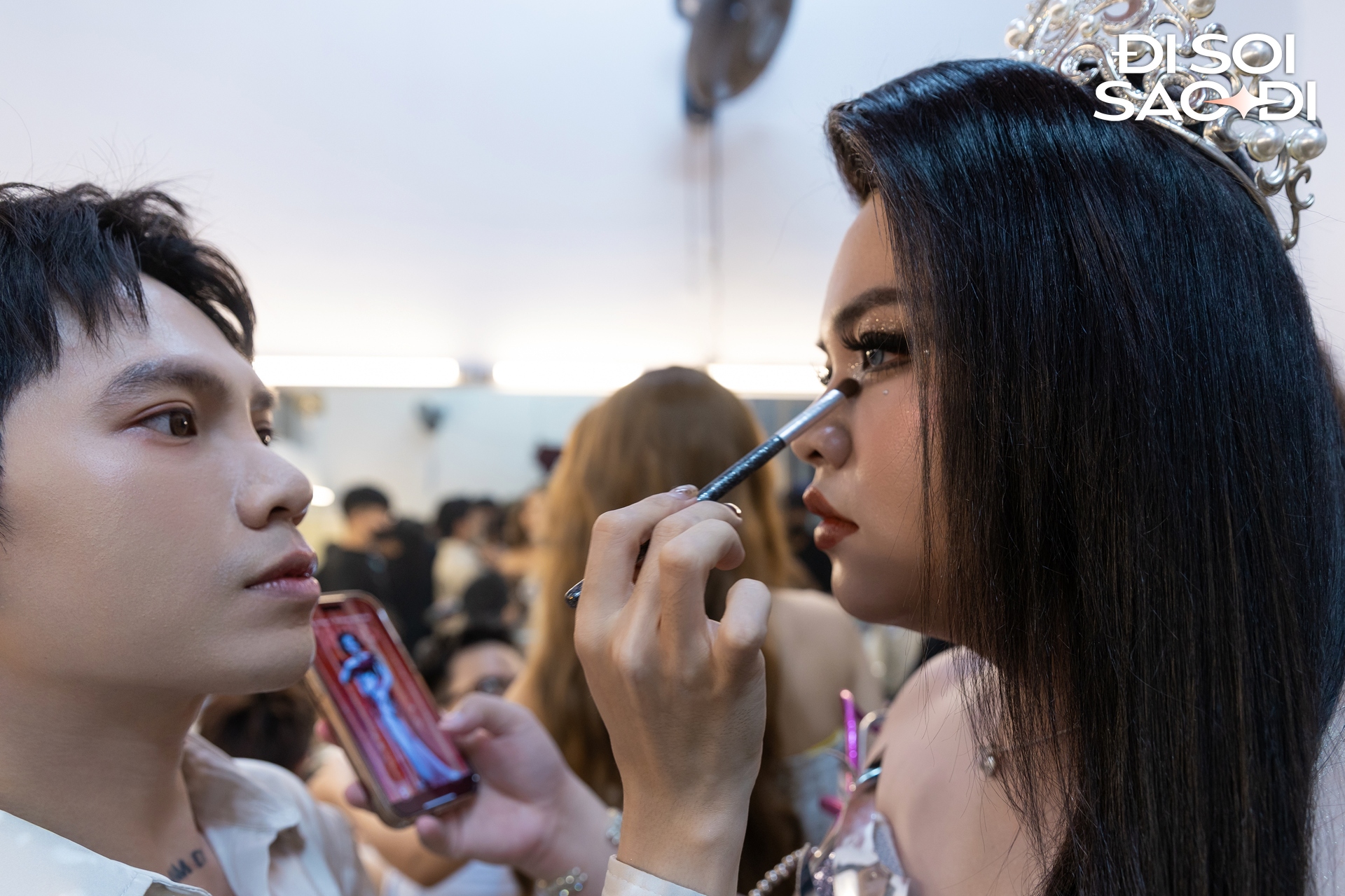 Lớp trang điểm đậm, mái tóc được tạo kiểu cầu kỳ, những bộ trang phục lấp lánh… tất cả góp phần tạo nên hình ảnh các Hoa hậu hoàn hảo khi bước ra sân khấu. Nhưng ít ai biết, để có vài phút tỏa sáng đó là cả quá trình chuẩn bị gấp rút, đôi khi chỉ tính bằng từng phút. Không khí hậu trường cũng cho thấy rõ áp lực chạy đua với thời gian. Có những khoảnh khắc, cả ekip phải cùng lúc chỉnh trang phục, dặm lại lớp make-up, kiểm tra phụ kiện chỉ trong vài phút ngắn ngủi trước khi diễn viên bước ra sân khấu. Sự phối hợp nhịp nhàng giữa các bộ phận chính là yếu tố giữ cho vở diễn trơn tru, không một giây chệch nhịp.