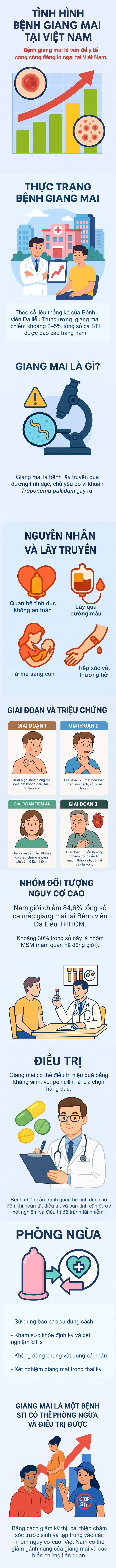Bài infographic trên đây cung cấp cái nhìn toàn diện về thực trạng, nguyên nhân, số liệu thống kê mới nhất và các giải pháp phòng ngừa bệnh giang mai. Qua đó, người xem có thể nâng cao nhận thức, chủ động bảo vệ bản thân và người thân khỏi các bệnh lây truyền qua đường tình dục.
