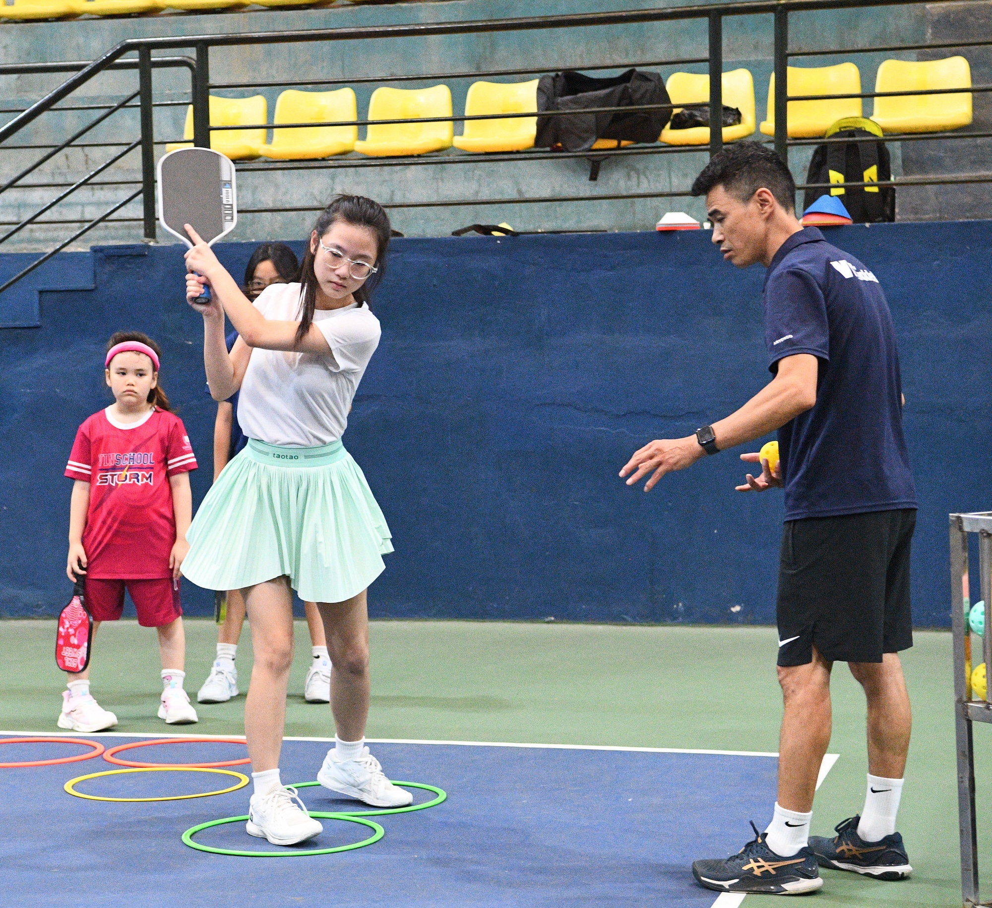 Trong khi đó với các “mầm non” pickleball, việc đến lớp không giống đi học mà giống một buổi sinh hoạt hè khi có thêm bạn mới, được chạy nhảy, vận động thoải mái.