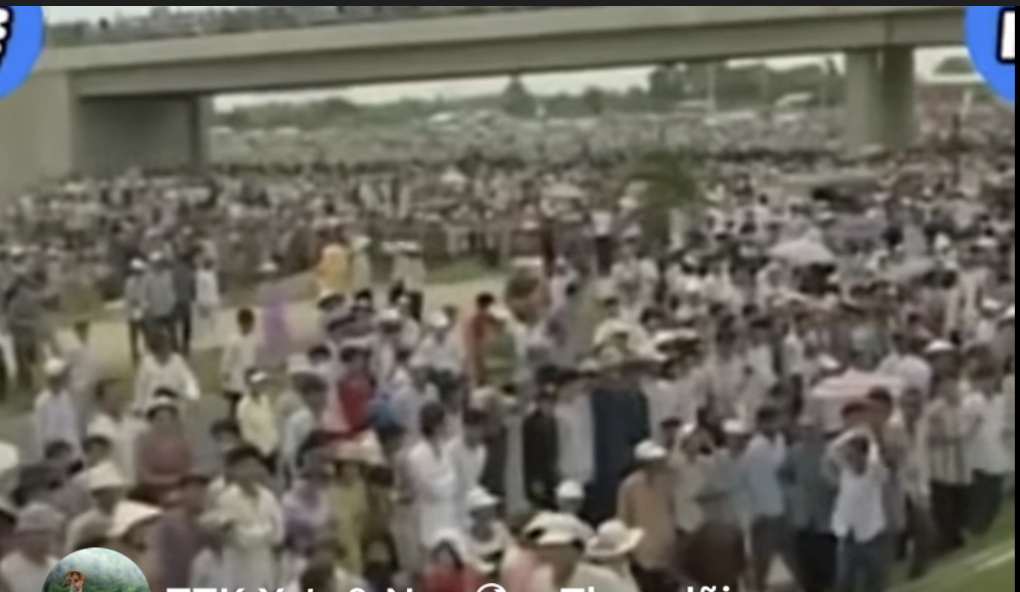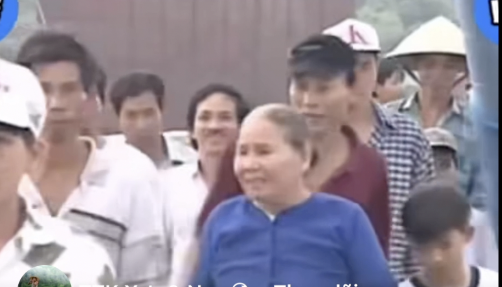Đông đảo người dân háo hức đi xem cầu Mỹ Thuận cách đây 26 năm. Ảnh cắt từ clip