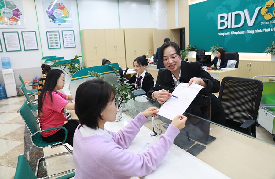 Tư vấn lãi suất cho khách hàng tại Ngân hàng thương mại cổ phần Đầu tư và Phát triển Việt Nam. Ảnh: Nguyễn Quang