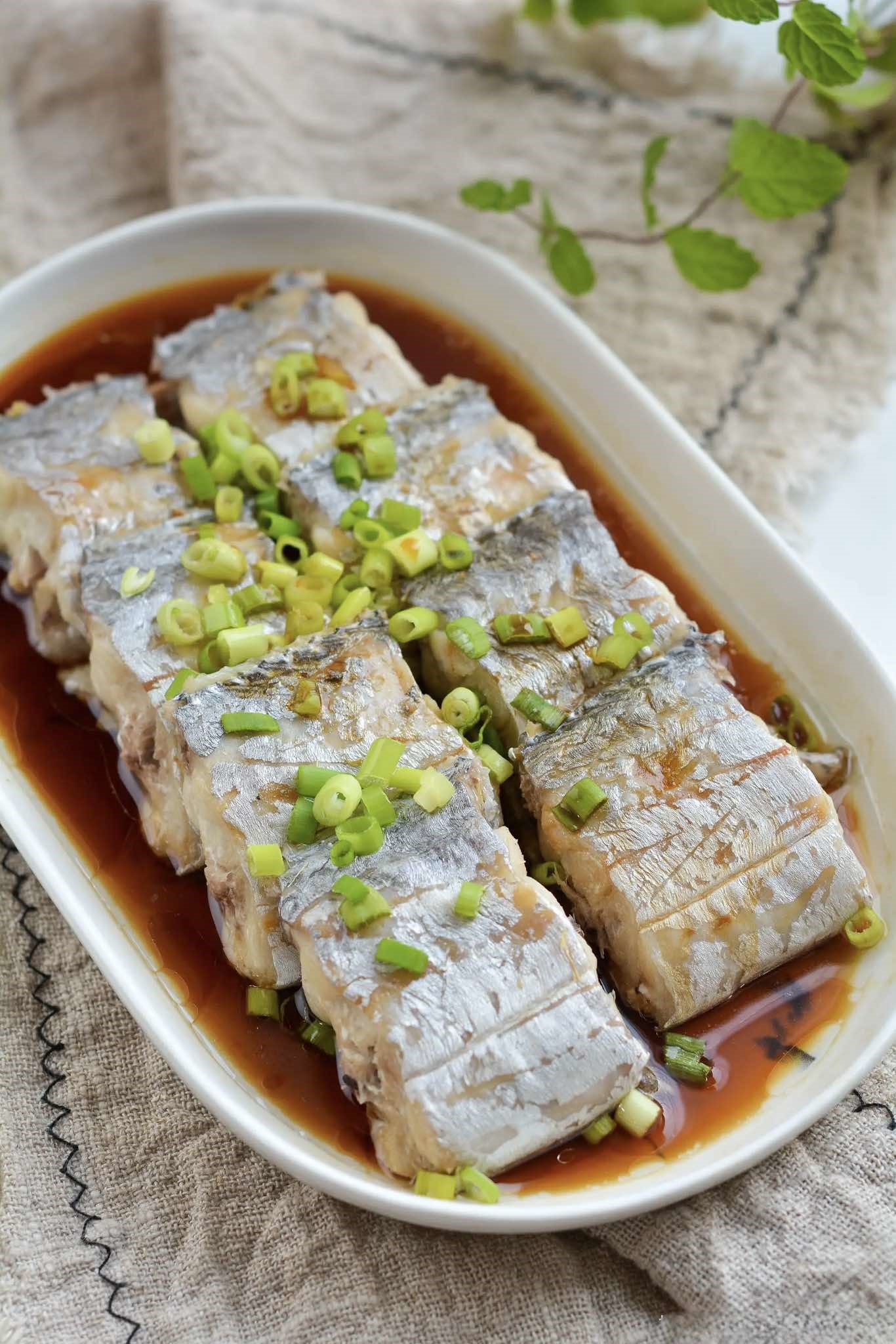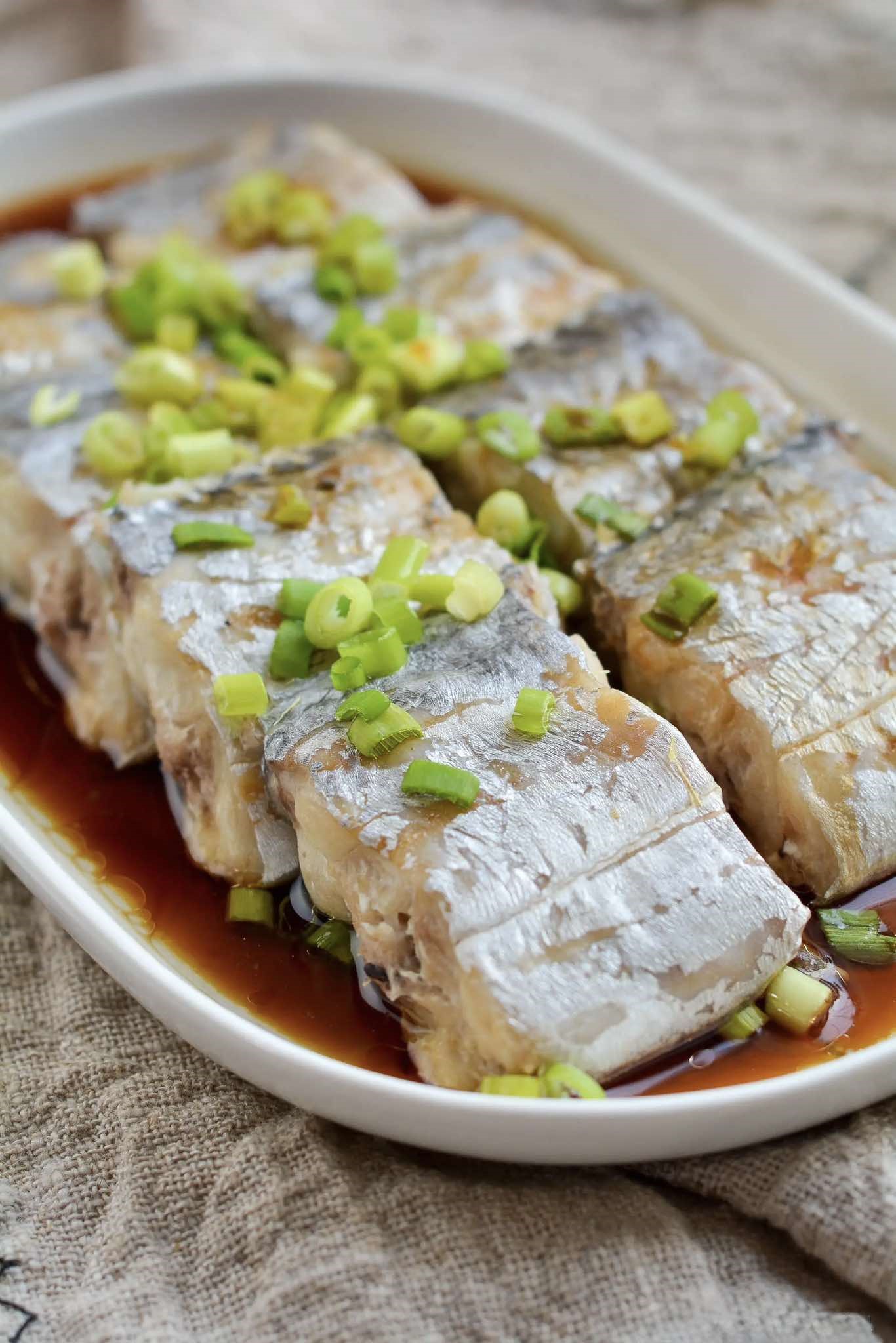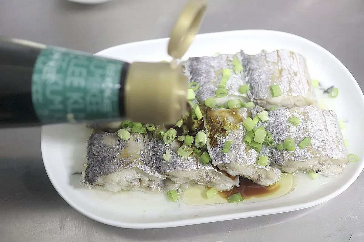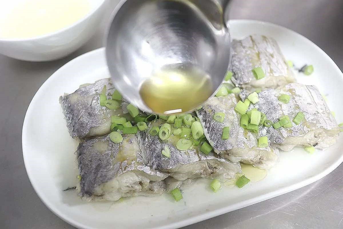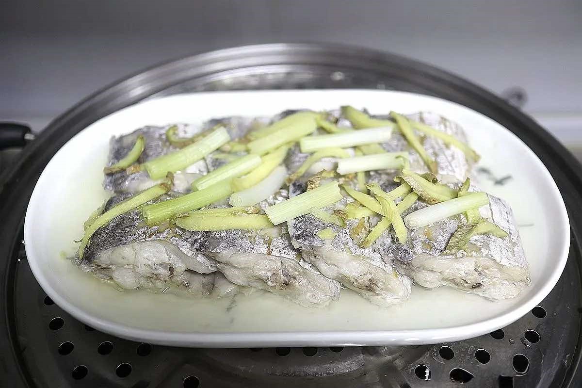 Bước 3: Sau khi đã xếp cá lên đĩa, bạn rắc đều hành lá xắt nhỏ và gừng thái sợi lên trên bề mặt cá. Đặt một nồi hấp lên bếp, đun sôi. Sau đó đặt đĩa cá lên xửng rồi hấp trong 8 phút ở mức lửa lớn. Sau khi cá chín, bạn lấy ra khỏi nồi hấp, nhặt gừng và hành lá đã hấp ra, rồi lại rắc lên một lớp hành lá thái nhỏ mới, rưới dầu oliu đã đun nóng vào để kích thích mùi thơm. Cuối cùng bạn thêm lượng nước tương cá hấp vừa đủ vào là có thể thưởng thức!