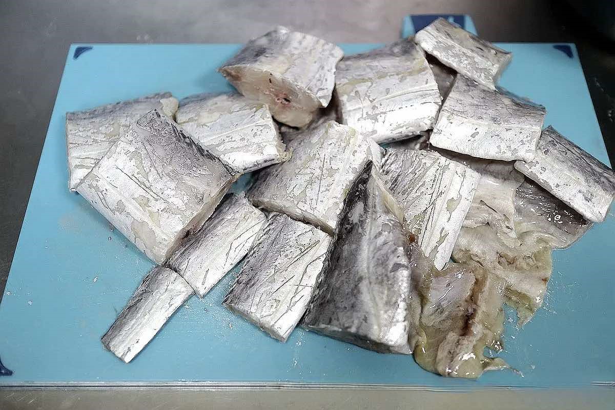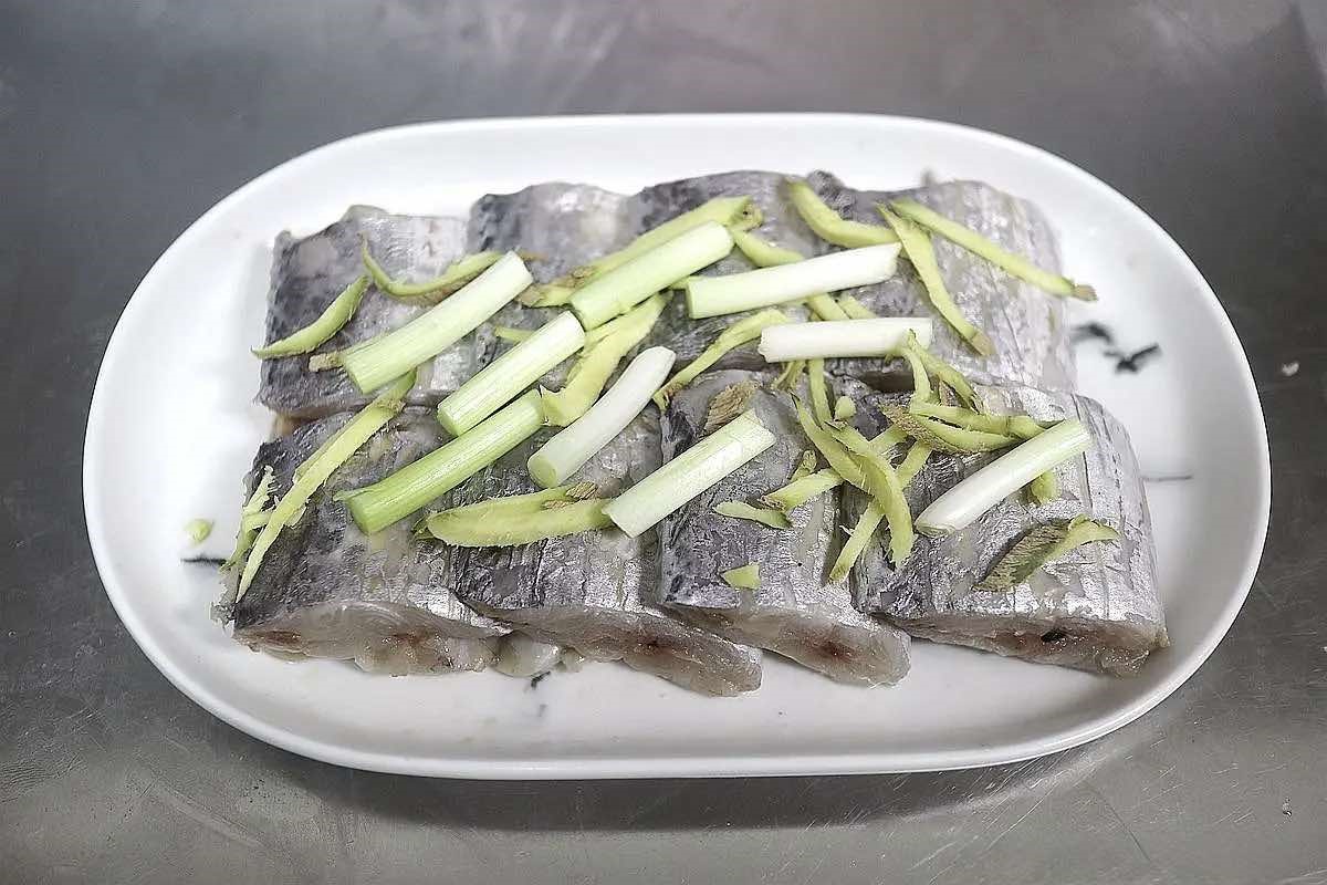 Bước 2: Sau khi đã rửa sạch cá, bạn thấm khô nước rồi cắt thành các đoạn có chiều dài bằng nhau. Tiếp đó bạn lần lượt xếp cá hố đã cắt khúc vào đĩa sâu lòng. Lưu ý xếp gọn gàng lên đĩa để sau khi hấp món ăn bạn không phải chỉnh trang, chỉ việc trang trí thêm.