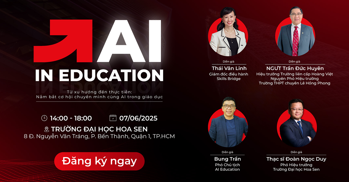 Diễn đàn quy tụ những diễn giả là người thực chiến, đại diện cho các trường đại học, tổ chức giáo dục và doanh nghiệp đang triển khai chuyển đổi số giáo dục tại Việt Nam như: Thạc sĩ Đoàn Ngọc Duy, Phó Hiệu trưởng Trường Đại học Hoa Sen, người dẫn dắt nhiều sáng kiến chuyển đổi số trong giáo dục đại học; Nhà giáo Ưu tú Trần Đức Huyên, Hiệu trưởng Trường liên cấp Hoàng Việt, nguyên Phó Hiệu trưởng Trường THPT chuyên Lê Hồng Phong, người am hiểu sâu sắc những thách thức của giáo dục phổ thông; bà Thái Vân Linh, Giám đốc điều hành Skills Bridge, đại diện cho góc nhìn doanh nghiệp về đào tạo kỹ năng và khả năng thích ứng với thị trường lao động cùng ông Bung Trần, Chủ tịch AI Education, chuyên gia tiên phong trong nghiên cứu và ứng dụng AI vào giáo dục tại Việt Nam.