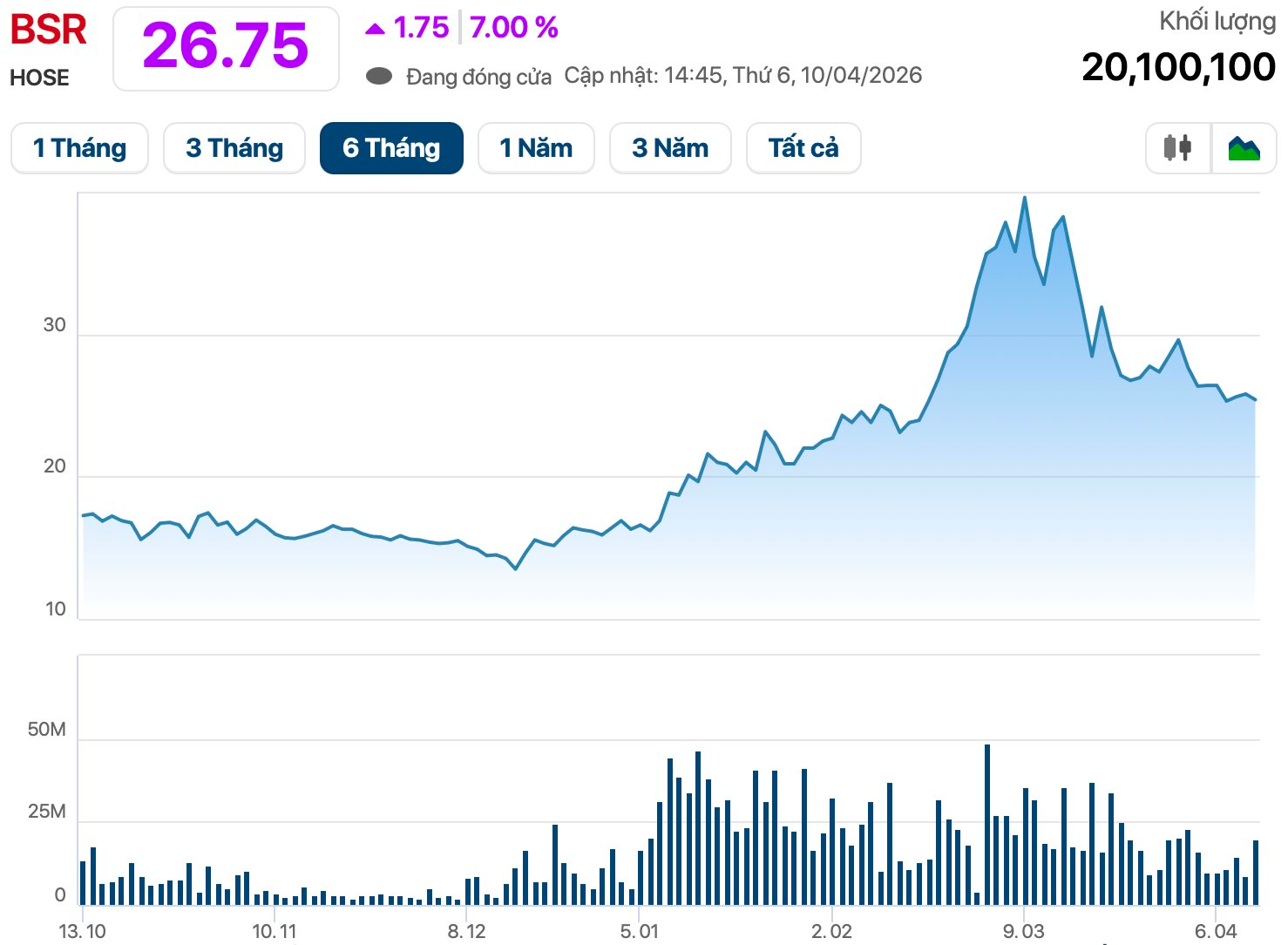 Trên sàn chứng khoán, cổ phiếu BSR đã giảm gần 30% từ đỉnh nhưng vẫn cao hơn 66% so với thời điểm đầu năm. Vốn hóa thị trường tương ứng 134.000 tỷ đồng (~5 tỷ USD).
