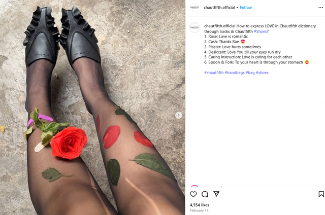 Cụ thể, thương hiệu này đã chụp những bức hình phối quần tất với giày mules, đi kèm với đó là loạt vật dụng như thìa, dĩa, hoa hồng, giấy note, gói hút ẩm… Tâm điểm của bài post nằm ở tấm hình nhét những tờ tiền mệnh giá 500.000 VNĐ vào bên trong quần tất. Sáng tạo, thời trang đâu chưa thấy nhưng hình ảnh này đã khiến brand nhận về làn sóng phẫn nộ vì hành động xúc phạm tiền tệ, không phù hợp với thuần phong mỹ tục.