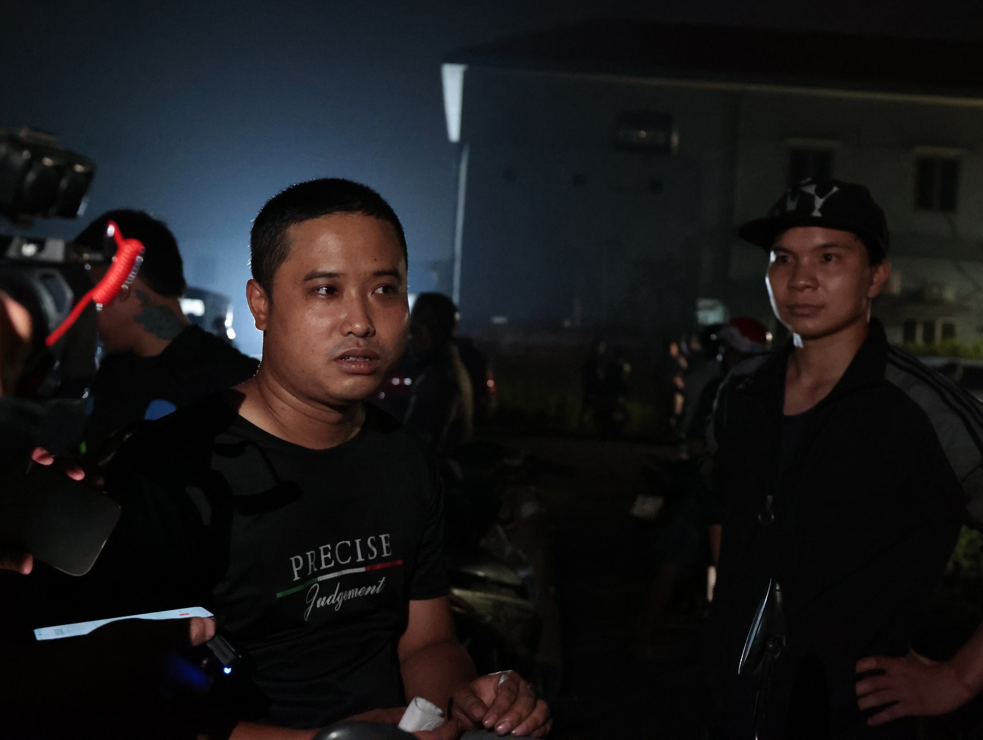 Phát hiện có cháy, anh Long vội vàng lái xe máy đến hiện trường. Đến nơi, anh nhìn thấy bên trong lửa bốc cháy dữ dội, một người bị thương đã được chở đi cấp cứu, còn 2 người bị thương khác vẫn ở phía khu vực an toàn.