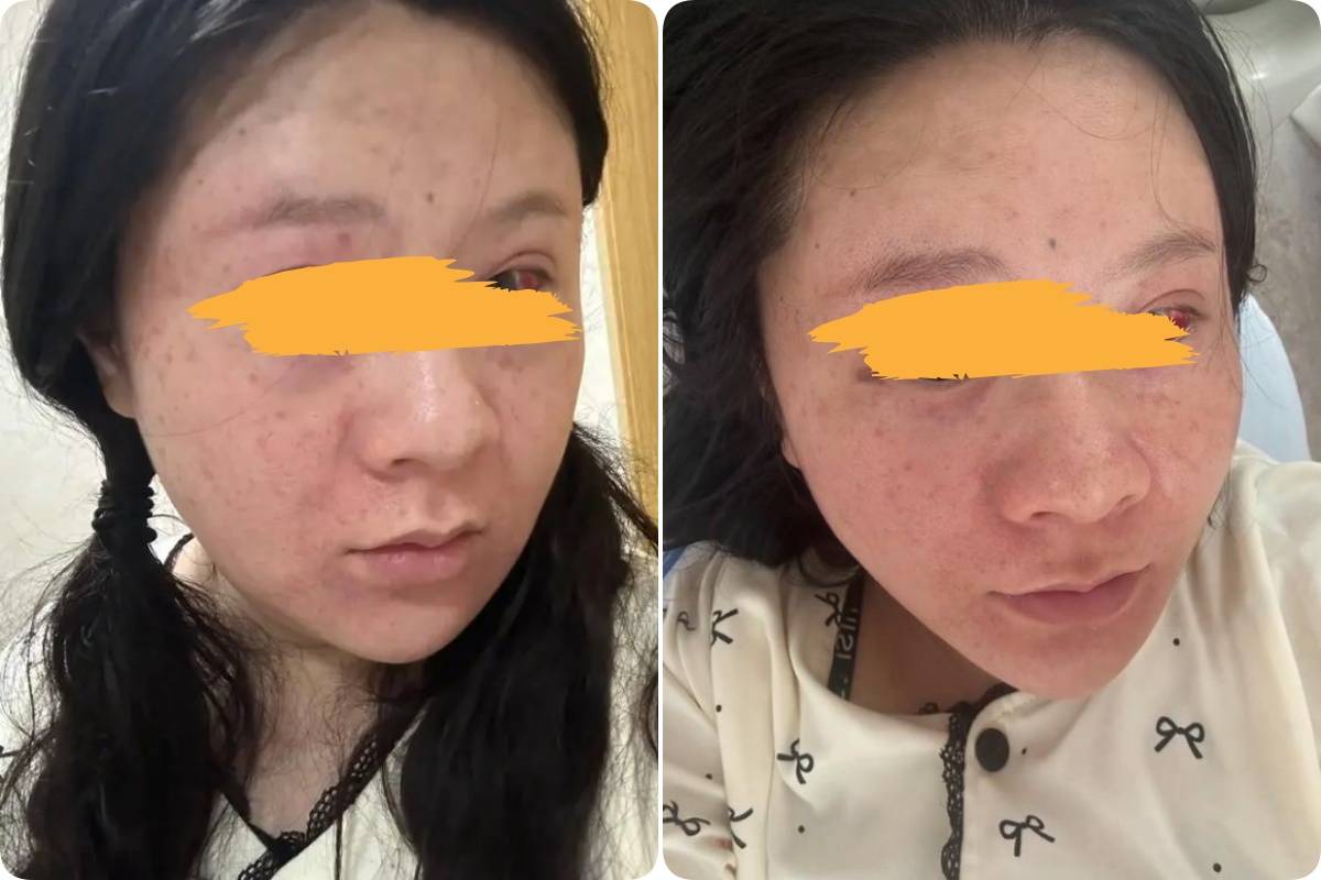 Trong quá trình sinh thường, mẹ bầu này chưa nắm vững kỹ thuật lấy hơi và rặn đẻ, dẫn đến việc dồn toàn bộ sức lực vào vùng mặt thay vì bụng dưới. Hậu quả của việc này là mao mạch dưới da ở vùng mặt và mắt bị vỡ, khiến khuôn mặt sưng phù, đỏ bừng và xuất hiện nhiều đốm xuất huyết.
