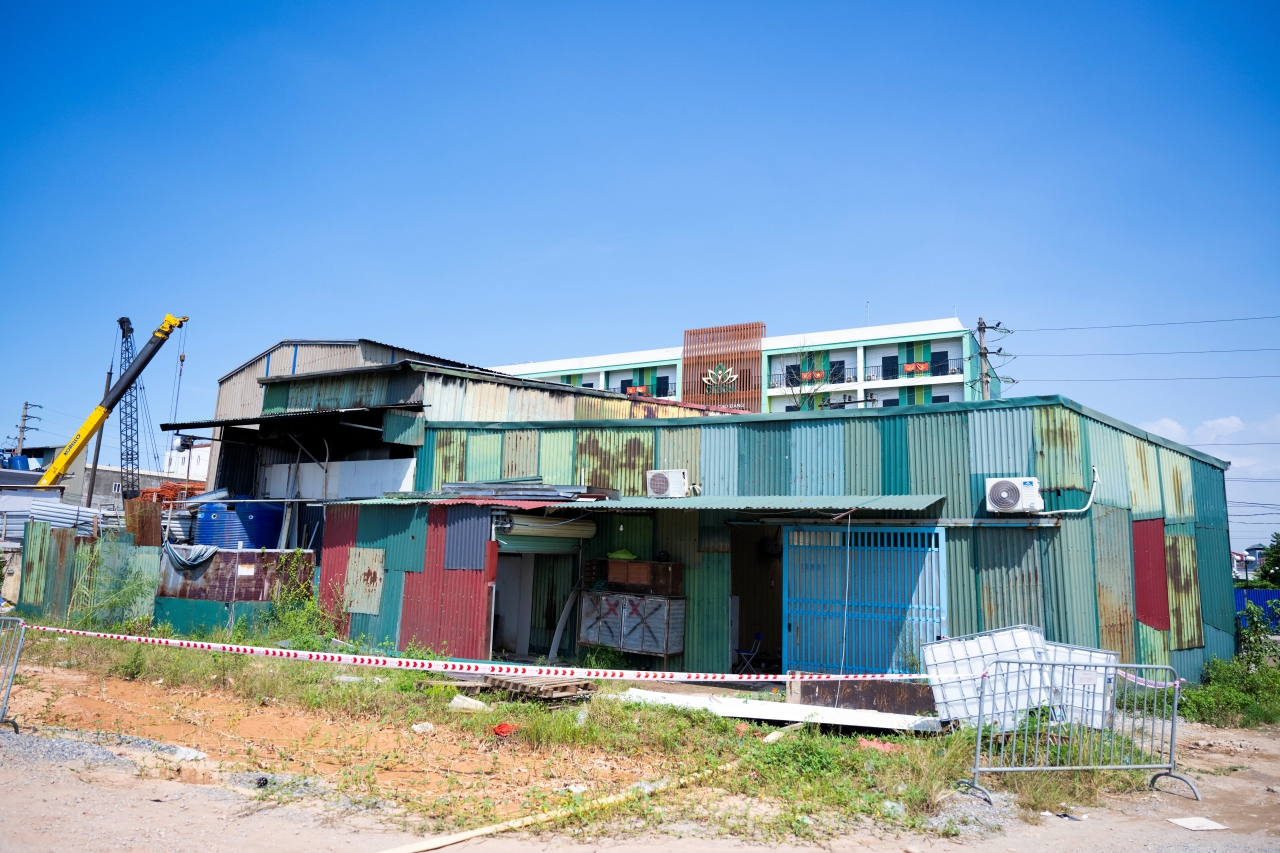 Theo ghi nhận tại hiện trường, căn nhà phía trước được xây bằng gạch; phần sau và một dãy phòng trọ liền kề được dựng tạm bằng tôn. Vị trí ngôi nhà nằm đối diện Trường Cao đẳng Kỹ thuật – Công nghệ Bách khoa. Lực lượng chức năng cho biết toàn bộ khu vực nhà xưởng, đồ đạc phía trong bị cháy và các tấm tôn bao quanh đã bị lửa biến dạng. Tầng một của công trình được sử dụng làm nơi chứa đồ nghề cơ khí và để xe máy; trên gác xép là nơi ngủ của bốn nạn nhân.
