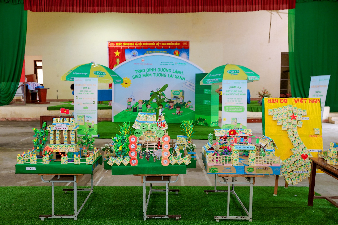 Học kỳ I vừa qua, mỗi ngày đến trường là một niềm vui khi các em được uống sữa đậu nành Fami và học cách gấp xếp, giữ lại vỏ hộp để tạo thành mô hình tham gia cuộc thi “Chiếc vỏ xinh kỳ diệu” do Vinasoy phát động. Bằng trí tưởng tượng phong phú và đôi tay khéo léo, những vỏ hộp sữa tưởng chừng như bỏ đi đã được biến hóa thành những mô hình độc đáo: một ngôi nhà nhỏ ấm áp, một chiếc máy bay chở theo ước mơ, hay cả một khu rừng xanh mát đầy sự sống. Đằng sau mỗi tác phẩm là sự cẩn thận, tỉ mỉ và hơn hết, là ý thức bảo vệ môi trường mà các em đã tự mình cảm nhận qua từng thao tác.