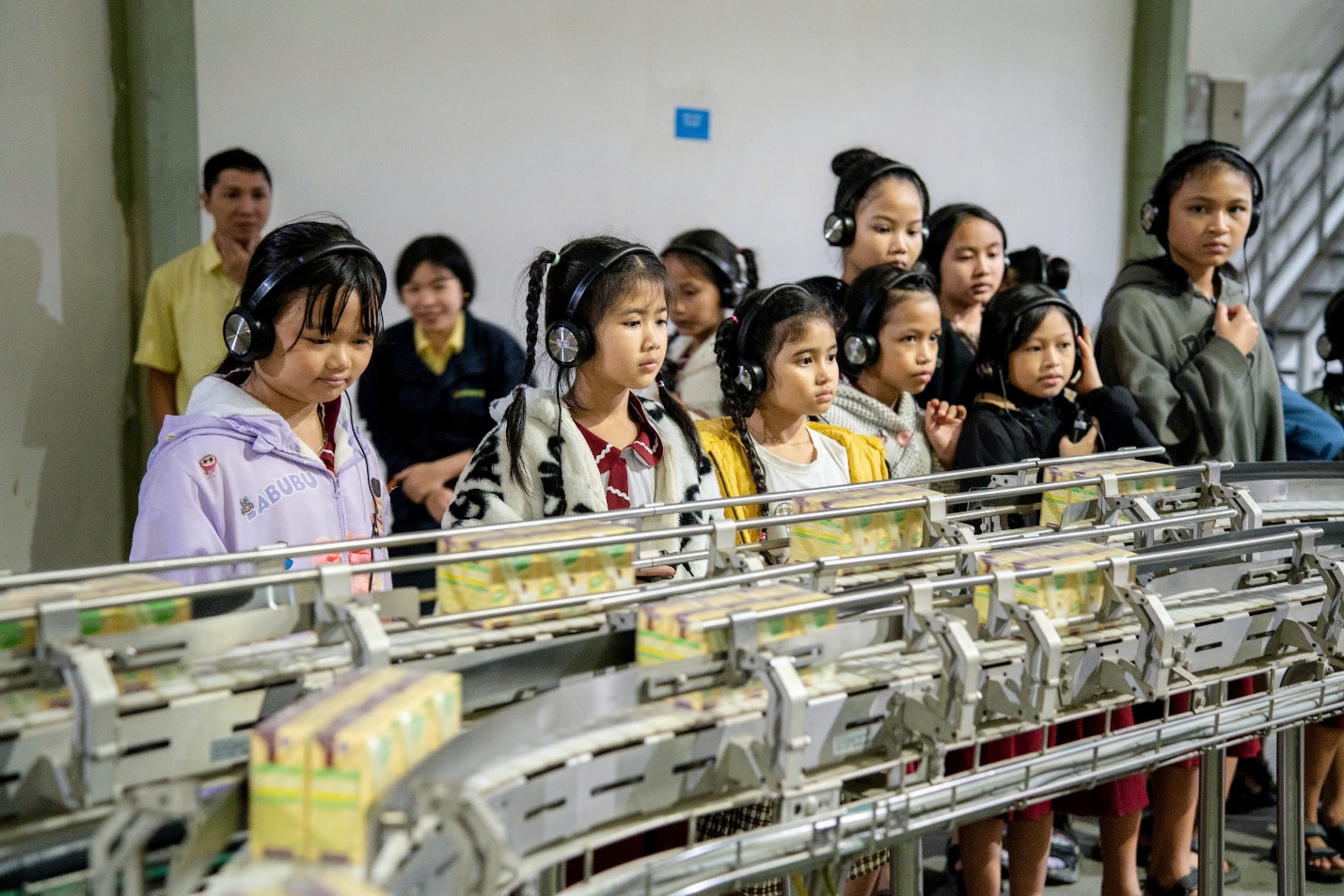 Chuyến tham quan nhà máy là một hành trình đầy cảm xúc với các em nhỏ. Lần đầu tiên rời xa bản làng để đến với thành phố, những đôi mắt tròn xoe háo hức trước thế giới rộng lớn ngoài kia. Bước vào nhà máy, các em trầm trồ khi chứng kiến quy trình sản xuất hiện đại, nơi những hạt đậu nành nhỏ bé được nâng niu, chế biến cẩn thận để trở thành những hộp sữa thơm ngon. Những câu hỏi hồn nhiên, sự ngạc nhiên thích thú khi tận mắt thấy dây chuyền sản xuất hiện đại, chuyên nghiệp đã giúp các em hiểu rõ hơn về giá trị của từng hộp sữa mà mình vẫn yêu thích mỗi ngày.