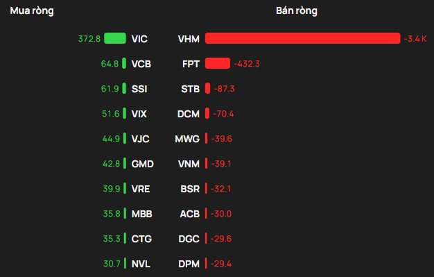 Ngược lại, VHM tiếp tục bị khối ngoại bán mạnh nhất với 3.400 tỷ đồng. Theo sau, các cổ phiếu FPT và STB cũng bị “xả” 432 tỷ đồng và 87 tỷ đồng.