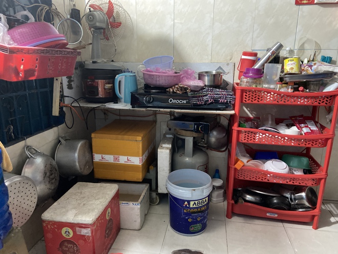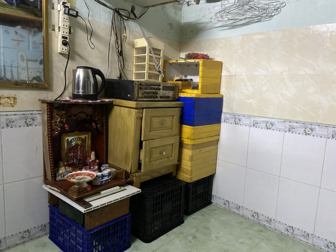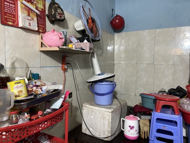 “Trời mưa là quạt, mùng, mành, chiếu gối là phải gác lên. Cứ đứng là vứt đồ lên thôi, mới làm xong mấy hôm nay. Tóm lại là phải ‘thủ’ sẵn. Cứ mưa là hai vợ chồng phải thay nhau đưa hết đồ đạc lên trên đó,” ông Liêm nói.
