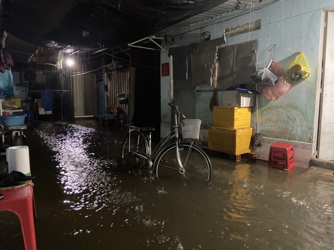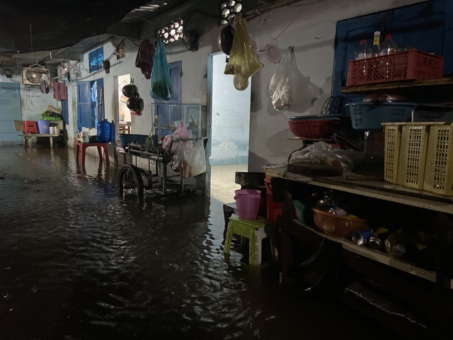 Đến tận đêm khuya, nước vẫn chưa rút, nhiều gia đình phải trắng đêm tát nước, dọn dẹp đồ đạc, rồi vội vã đi làm ca tối. Không có máy móc hỗ trợ, người dân chỉ biết tận dụng những vật dụng sẵn có như xẻng nhựa, chổi để hắt nước ra ngoài. Nhưng càng tát, nước lại càng tràn vào, khiến công sức gần như vô ích.