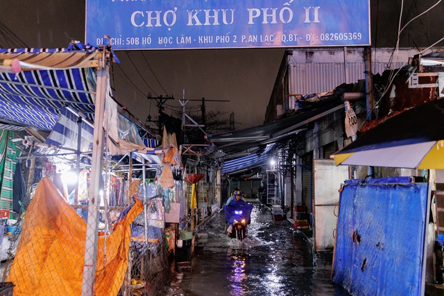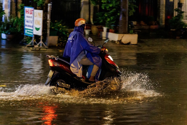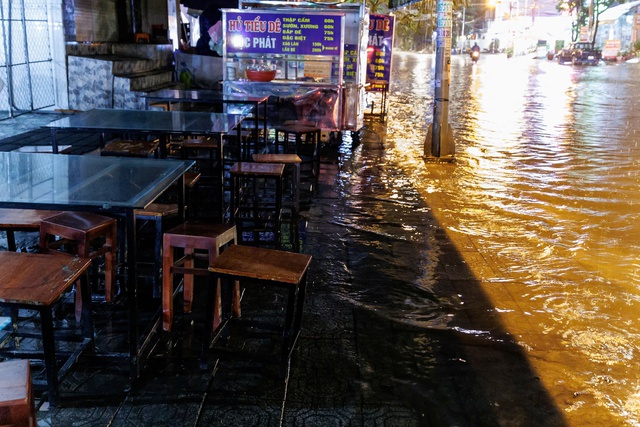 Không chỉ ảnh hưởng đến giao thông, mưa lớn còn khiến sinh hoạt buổi tối của người dân bị đảo lộn. Một số hàng quán ven đường đã phải đóng cửa sớm do nước tràn vào tận thềm.