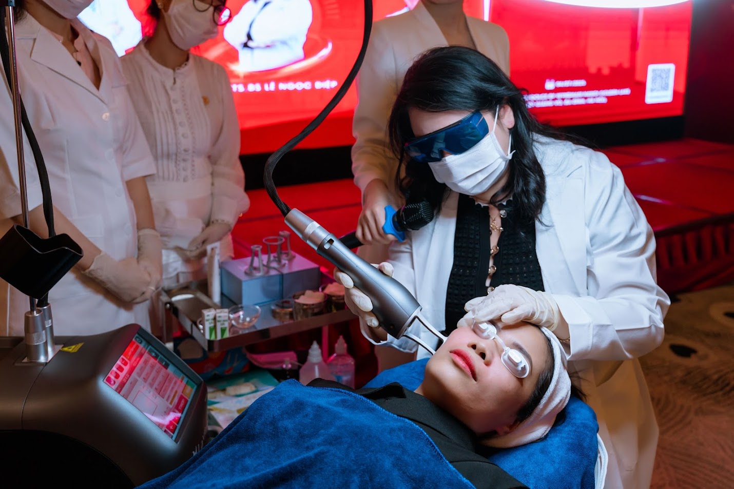 PGS.TS.BS Lê Ngọc Diệp điều trị nám cho bệnh nhân.