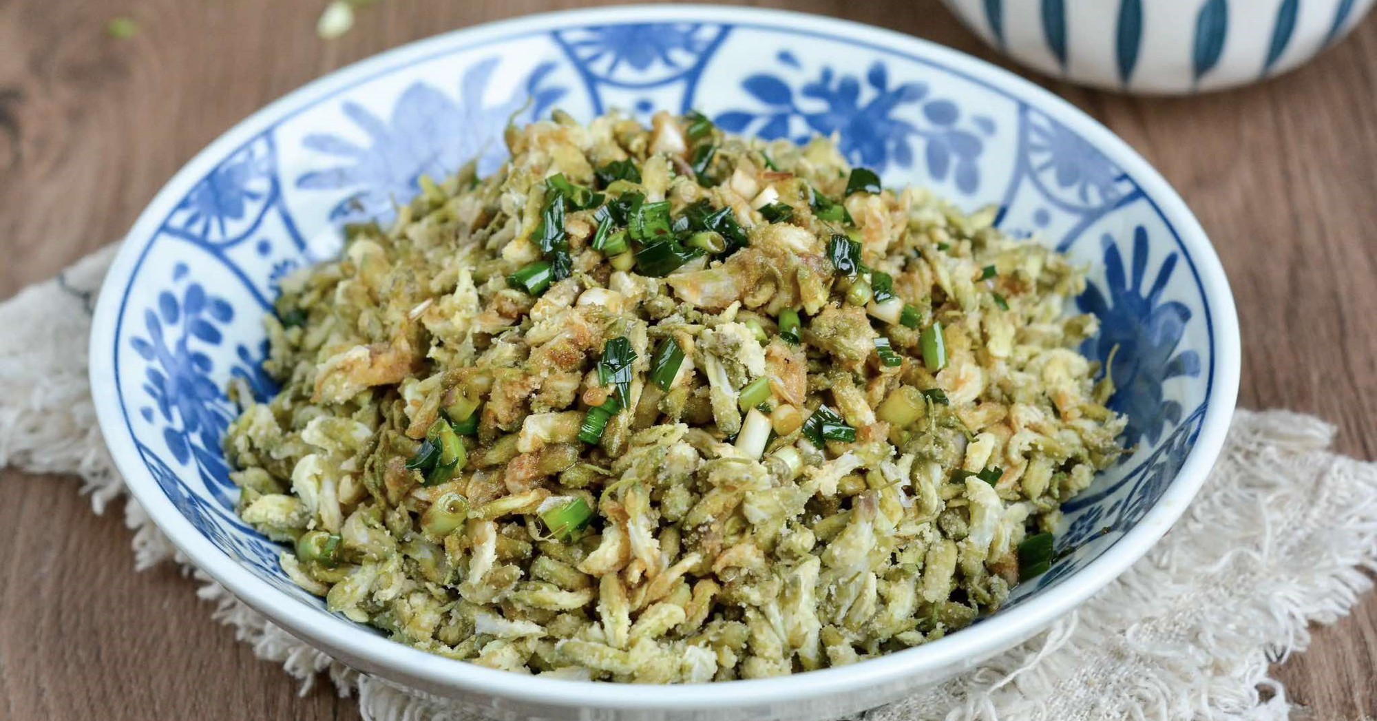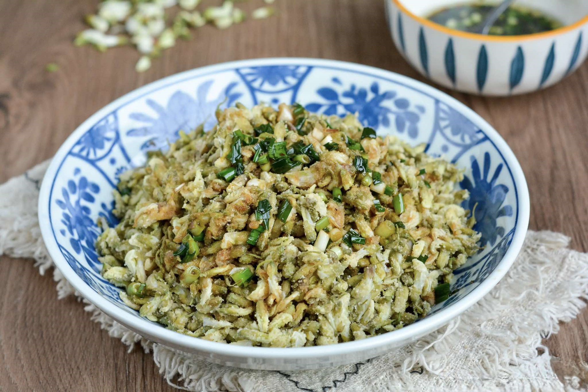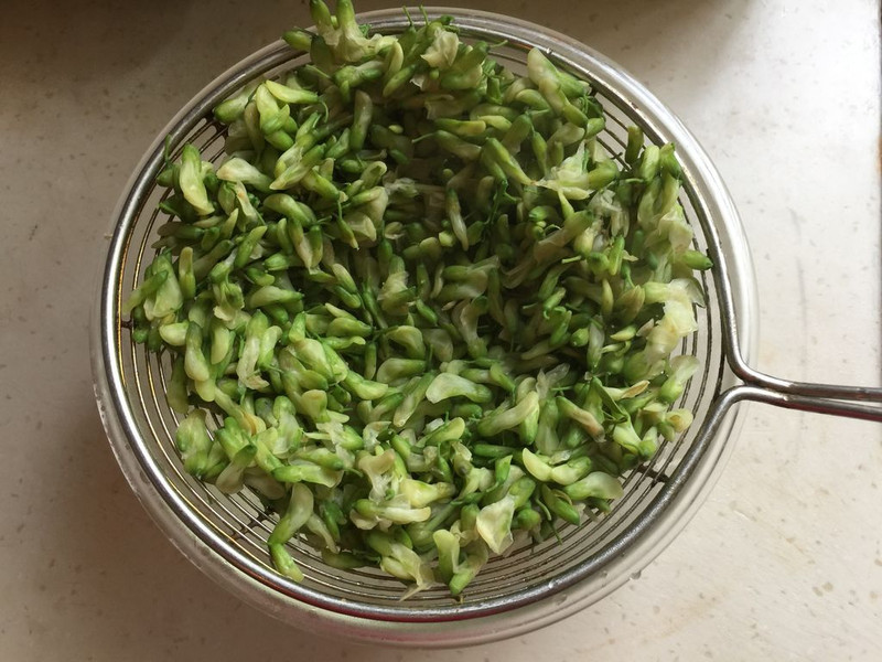 Bước 1: Hoa hòe bạn nhặt bỏ cuống, rửa nhẹ với nước muối pha loãng để loại bỏ tạp chất. Sau đó rửa lại với nước vài lần rồi để ráo. Đặt nồi nước lên bếp, đun sôi rồi cho hoa hòe và chần nhanh, vớt ra, để ráo.