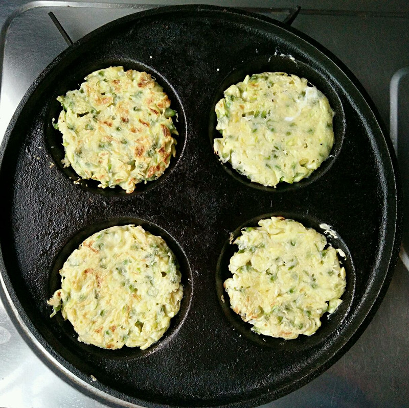Bước 2: Làm nóng chảo và phết một lớp dầu oliu vào. Khi dầu nóng, dùng thìa múc hỗn hợp hoa hòe vào, dàn đều. Bạn chỉnh chế độ lửa nhỏ và chiên từ từ. Chiên cho đến khi một mặt hơi vàng, lật lại tiếp tục chiên và lấy ra khỏi chảo khi cả hai mặt đều có màu vàng nâu. Lấy bánh ra khỏi khuôn là có thể thưởng thức.