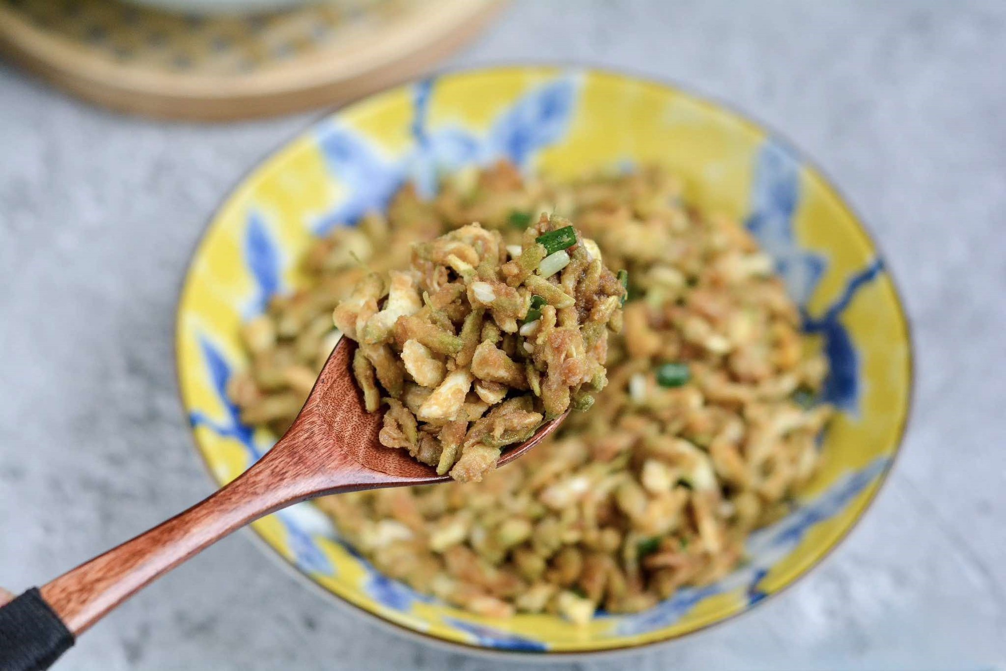 2. Khi cho thêm chút xíu gia vị (hoặc muối) để có thể kích thích mùi thơm và cảm nhận được vị ngọt nhẹ của hoa hòe.