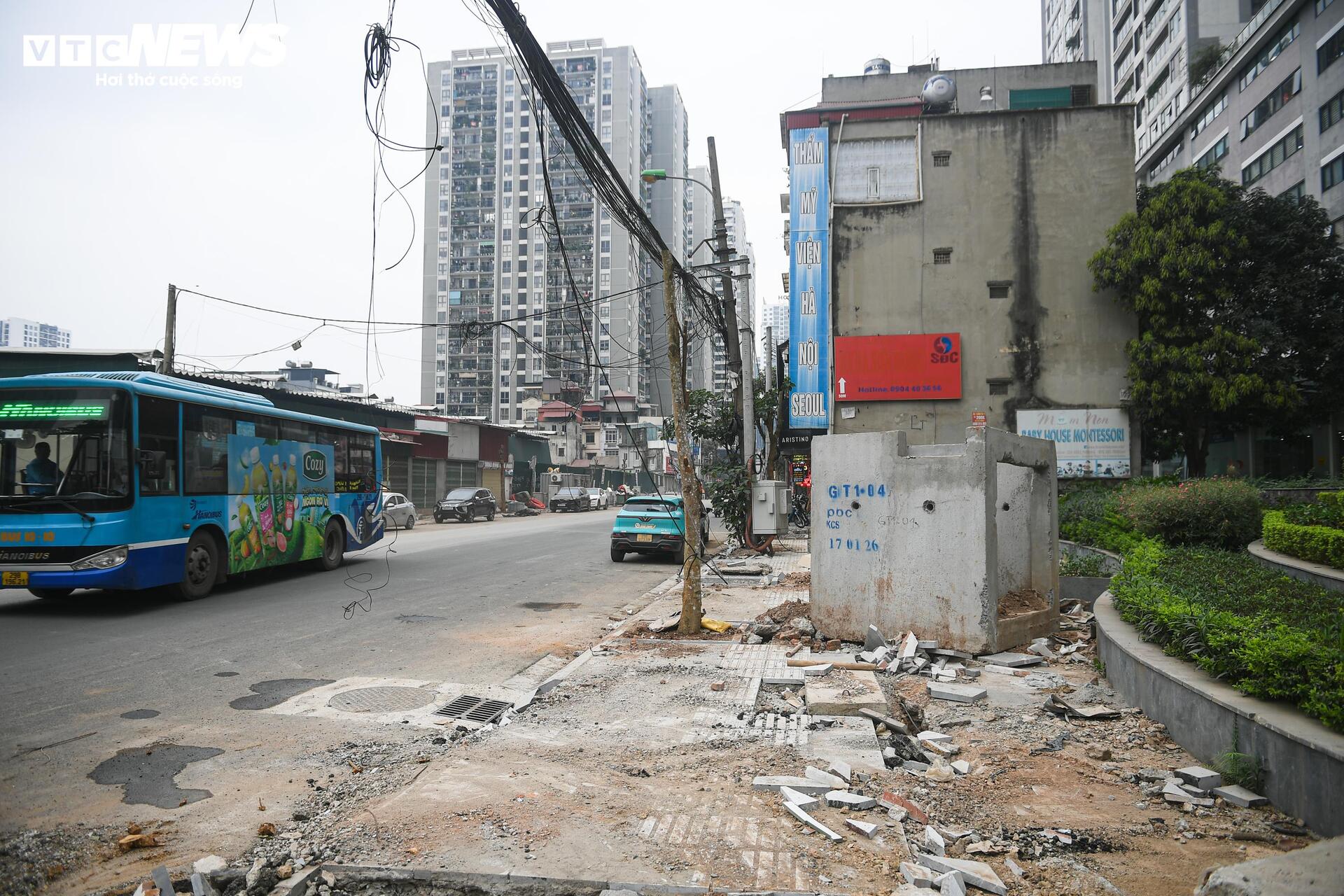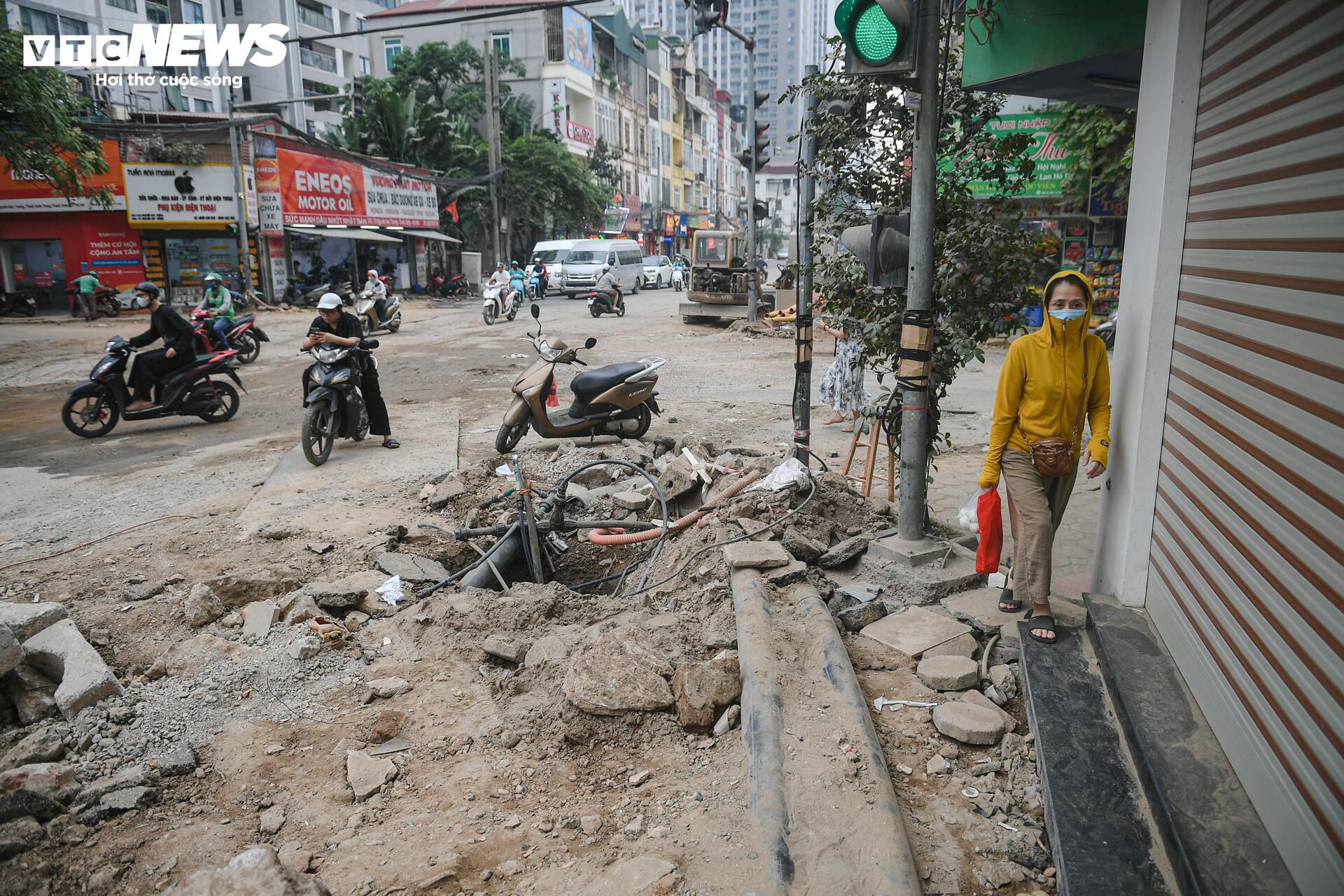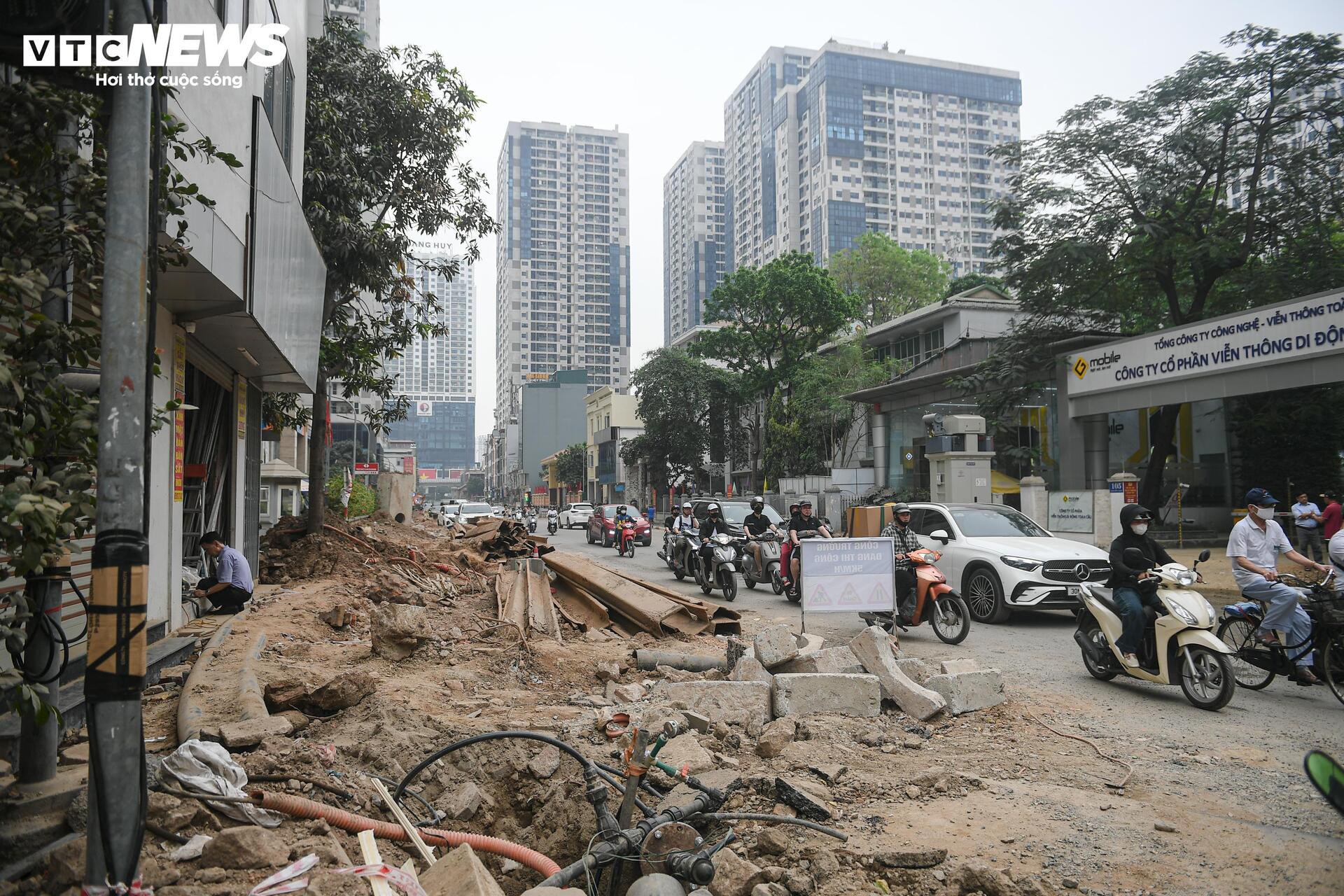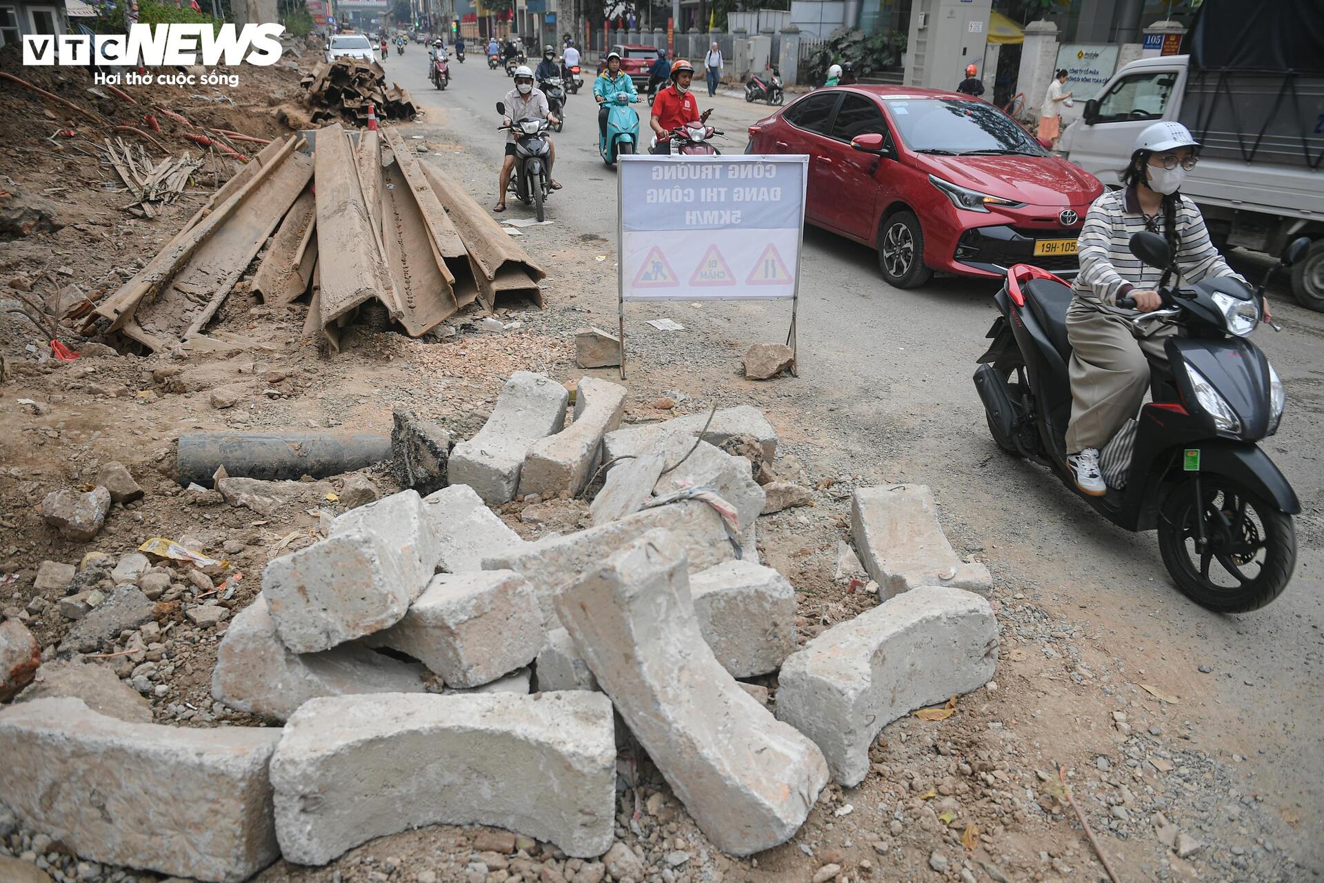 “Buổi sáng đưa con đi học mất nhiều thời gian hơn trước. Đường đang làm nhưng chưa xong, chỗ thì đào lên, chỗ thì rào lại, đi rất vất vả”, chị Minh (34 tuổi, trú tại phường Thanh Xuân) chia sẻ.