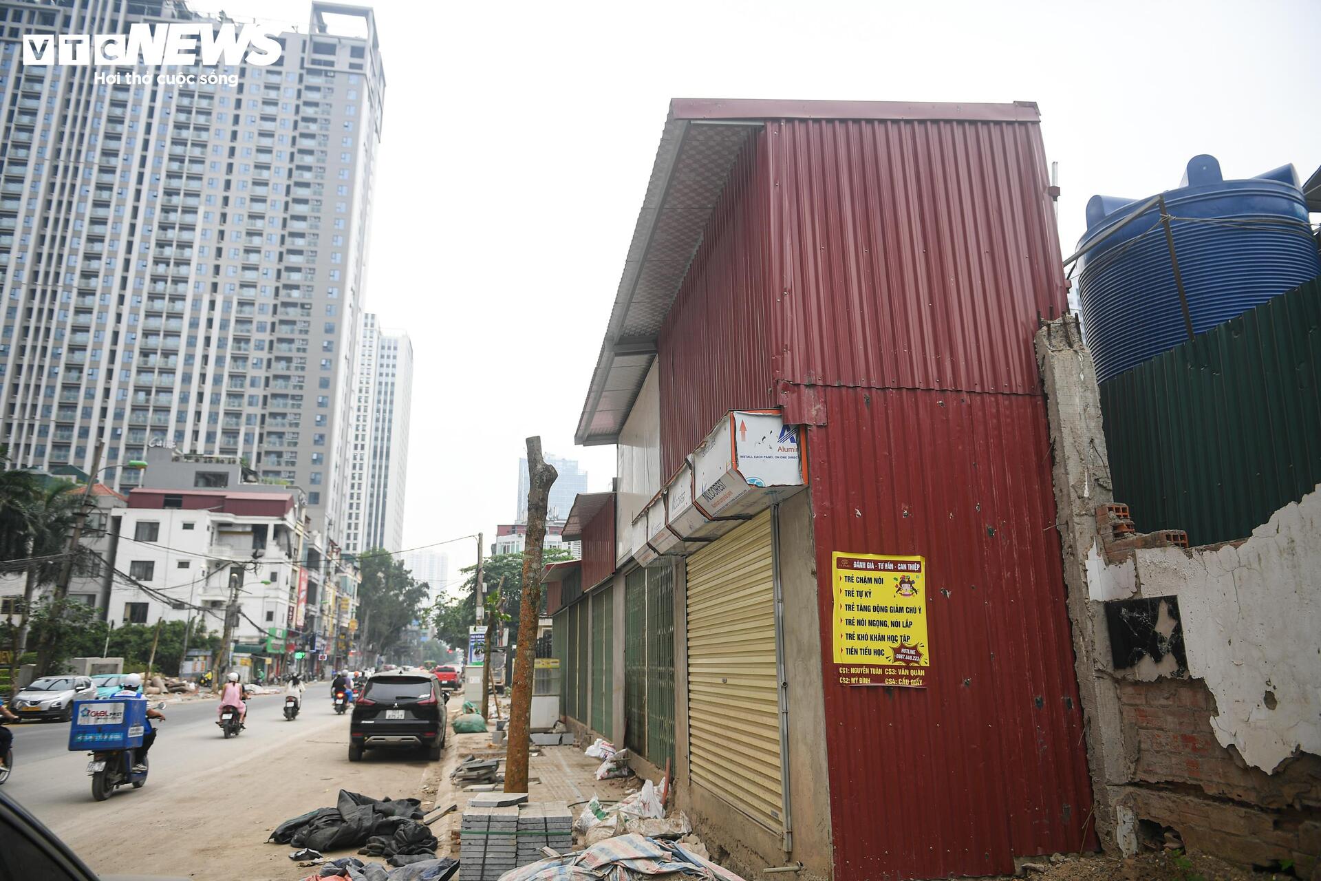 Ở đoạn từ nút giao Nguyễn Huy Tưởng đến ngõ 162 Nguyễn Tuân, mặt đường đã được thảm nhựa một phần, song các hạng mục vỉa hè vẫn chưa hoàn thiện, còn nhiều điểm ngổn ngang.