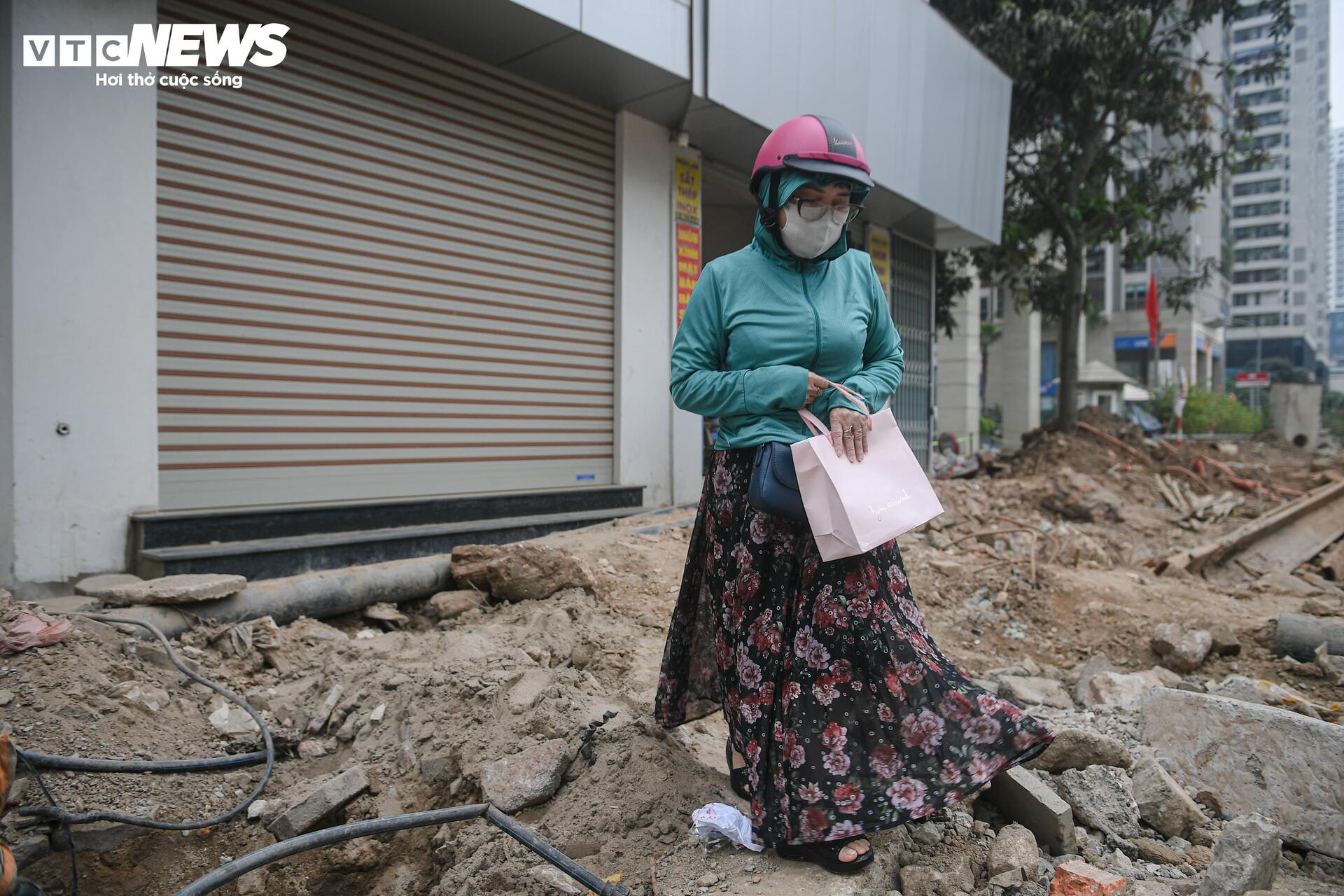 Không ít người tỏ ra lúng túng khi tìm lối di chuyển giữa các đống vật liệu và khu vực đang đào xới. “Có đoạn phải đi vòng, có đoạn phải bước xuống lòng đường vì vỉa hè bị chắn hết. Trời nắng thì bụi, trời mưa thì trơn trượt, đi lại rất bất tiện”, bà Hanh (cư dân một chung cư trên đường Nguyễn Tuân) cho biết.